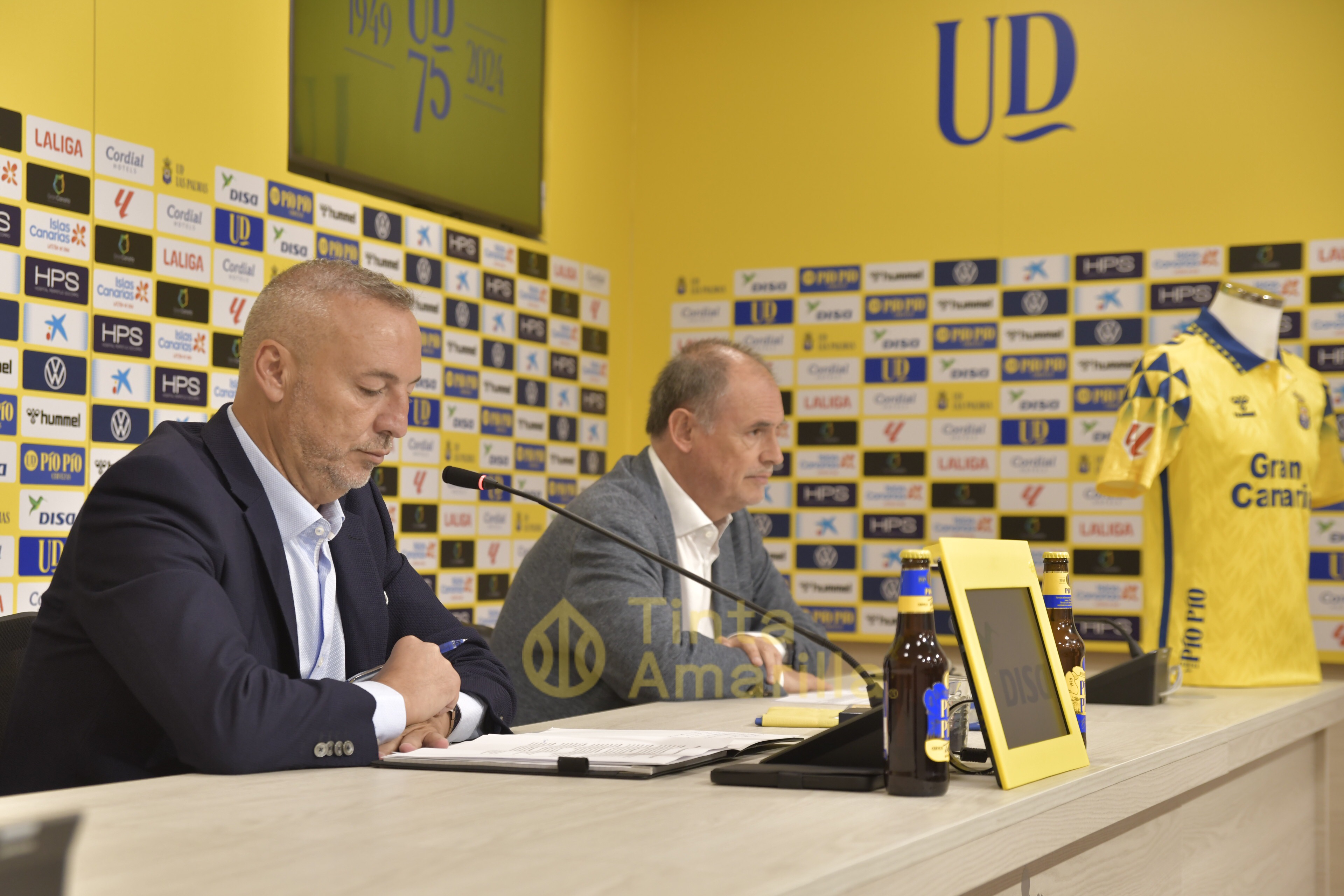 El presidente del club amarillo, Miguel Ángel Ramírez, junto al consejero Rafael Méndez,fueron los encargados de divulgar los actos previstos y que tendrán su punto de salida en la fecha conmemorativa. En la sala de prensa del Estadio de Gran Canaria también estuvieron presentes el vicepresidente del club, Nicolás Ortega, así como el director general de gestión, Patricio Viñayo, además del presidente de honor, Germán Dévora, el ex presidente Luis Sicilia y el presidente de la Asociación de Ex jugadores, Roque Díaz. También los miembros de la Fundación del club, Manolo López, Paquito Ortiz y Carmelo Pérez, activos gestores del proyecto.