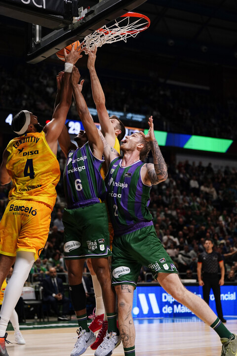 No había respiro para nadie. El paso por vestuarios no supuso ninguna novedad bajo el techo del Carpena y repartiendo golpes de uno y otro lado el marcador reflejaba una igualdad absoluta incluso en las alternancias de dominio (45-48). Los de Lakovic se mantenían en el encuentro con apenas fisuras en su juego, al margen de las que se producían por sus erráticos lanzamientos de tiros libres (64-63) que le impidieron que su primera victoria parcial fuera por más margen (24-26).