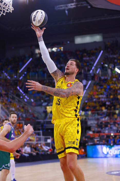Cuando el georgiano se fue al banquillo a recuperar fuerzas, apareció Fran Guerra para seguir degastando a los malagueños en el juego interior. El pívot grancanario se movía en la zona o abría el juego para sus compañeros, en una etapa de partido de igualdad.