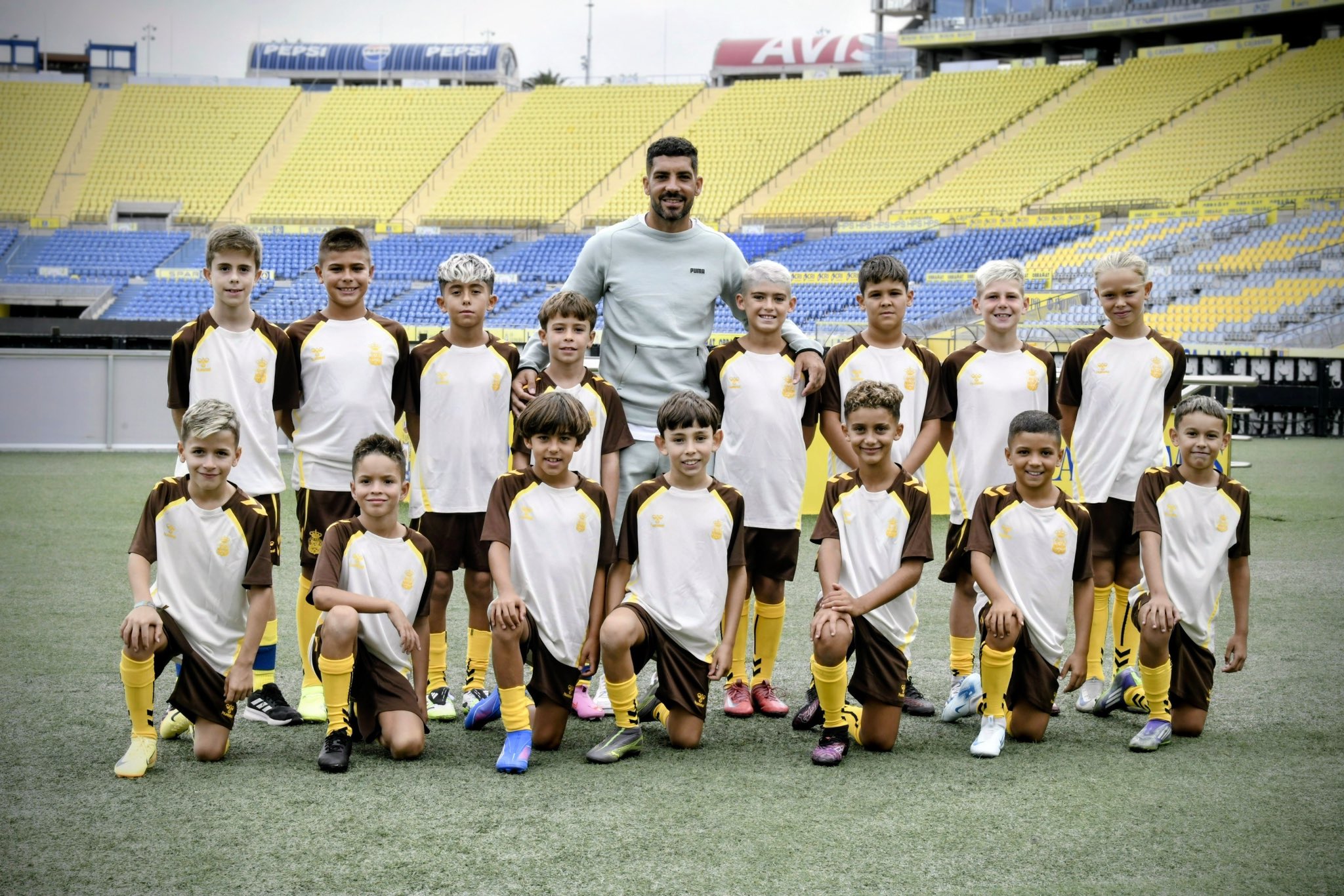 El nuevo equipo benjamín de la UD Las Palmas se presentó este lunes en el Estadio de Gran Canaria, con Alex Suárez ejerciendo como embajador de la plantilla profesional del club.