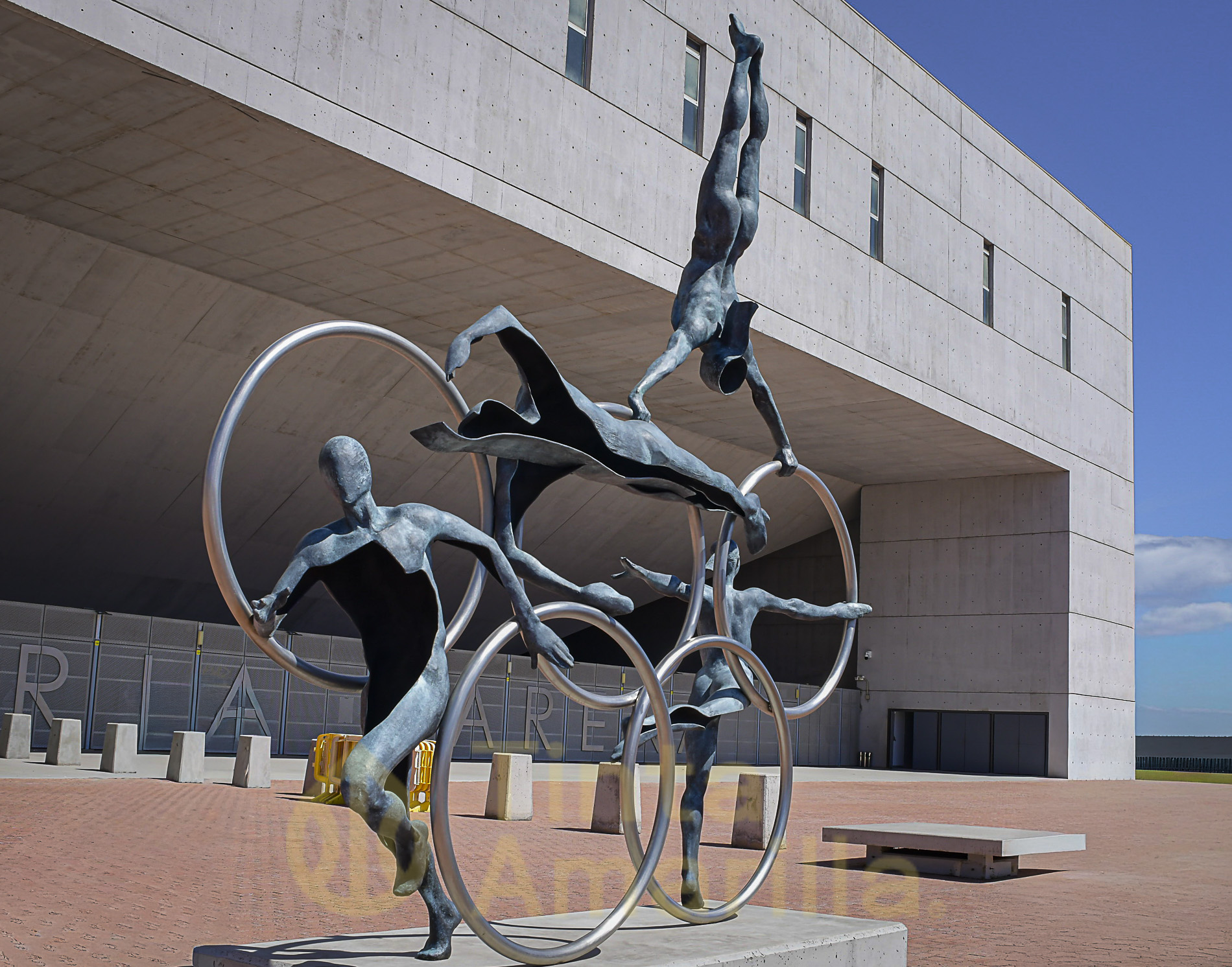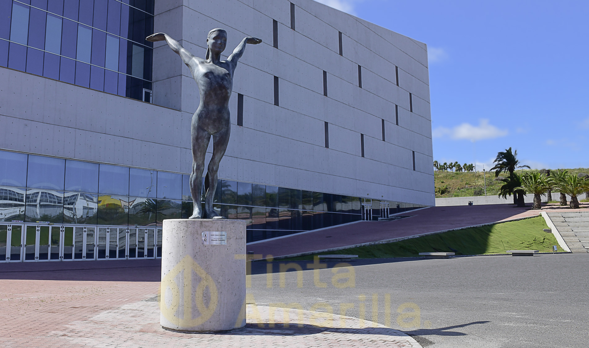 * En el acceso principal al Gran Canaria Arena: Olimpia -de 4 metros de alto y 4.5 metros de ancho-, “se concibe como un grupo escultórico de tamaño real compuesto por cuatro figuras que destacan a las diferentes disciplinas que se practican en la isla: atletismo, natación, gimnasia de aparatos y gimnasia de suelo. Tres de ellas son masculinas -representando la carrera de velocidad, la natación y la gimnasia- y una femenina -gimnasia de suelo-, logrando un equilibrio en la representación de género”.