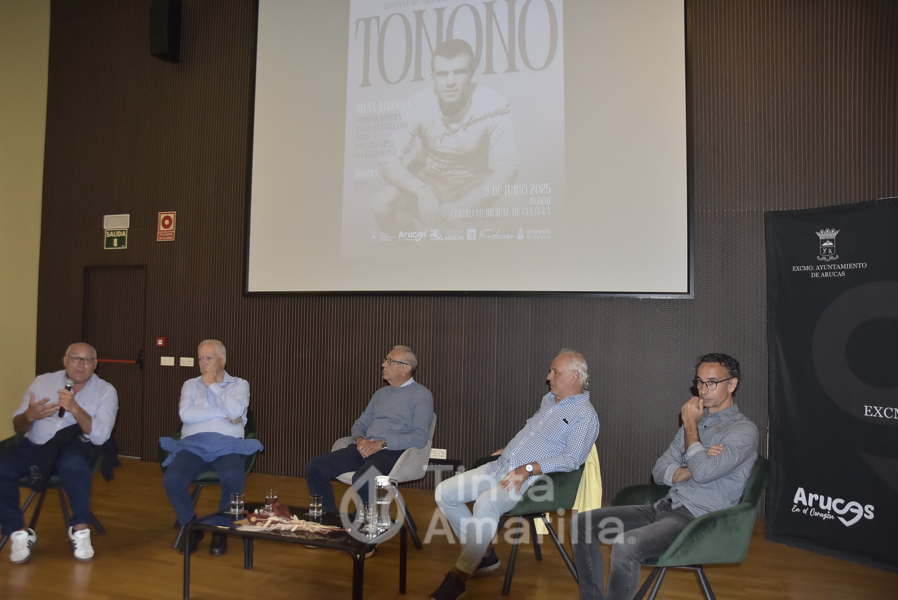 Durante una hora el ameno acto se desarrolló con la moderación del mismo por parte de Manuel Borrego, editor de Tintaamarilla.es: “50 años después estamos aquí hablando de una figura legendaria. Para comprender la altura deportiva que alcanzó Tonono hay que interpretar el deseo de Franz Beckenbauer al enviar unos presentes a sus familiares cuando el gran jugador germano ya estaba enfermo, hace un par de años. El intercambio se produjo en Arucas, con la mediación de Willy Pedersen, amigo personal del kaiser. Nunca olvidó a aquel jugador grancanario … El 9 de junio de 1975 ,oría el ídolo, pero nacía el mito”. Medio siglo después su recuerdo es eterno.