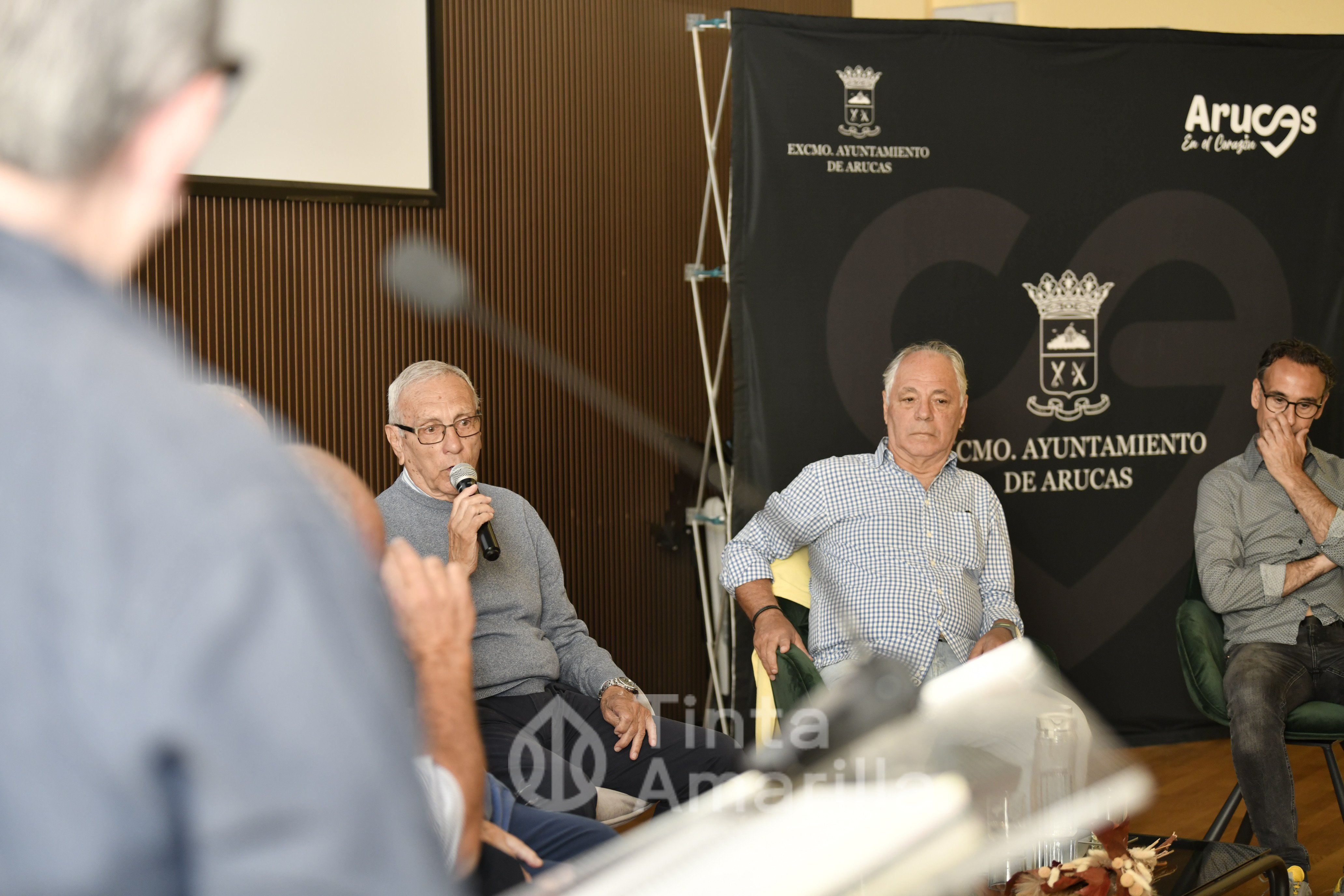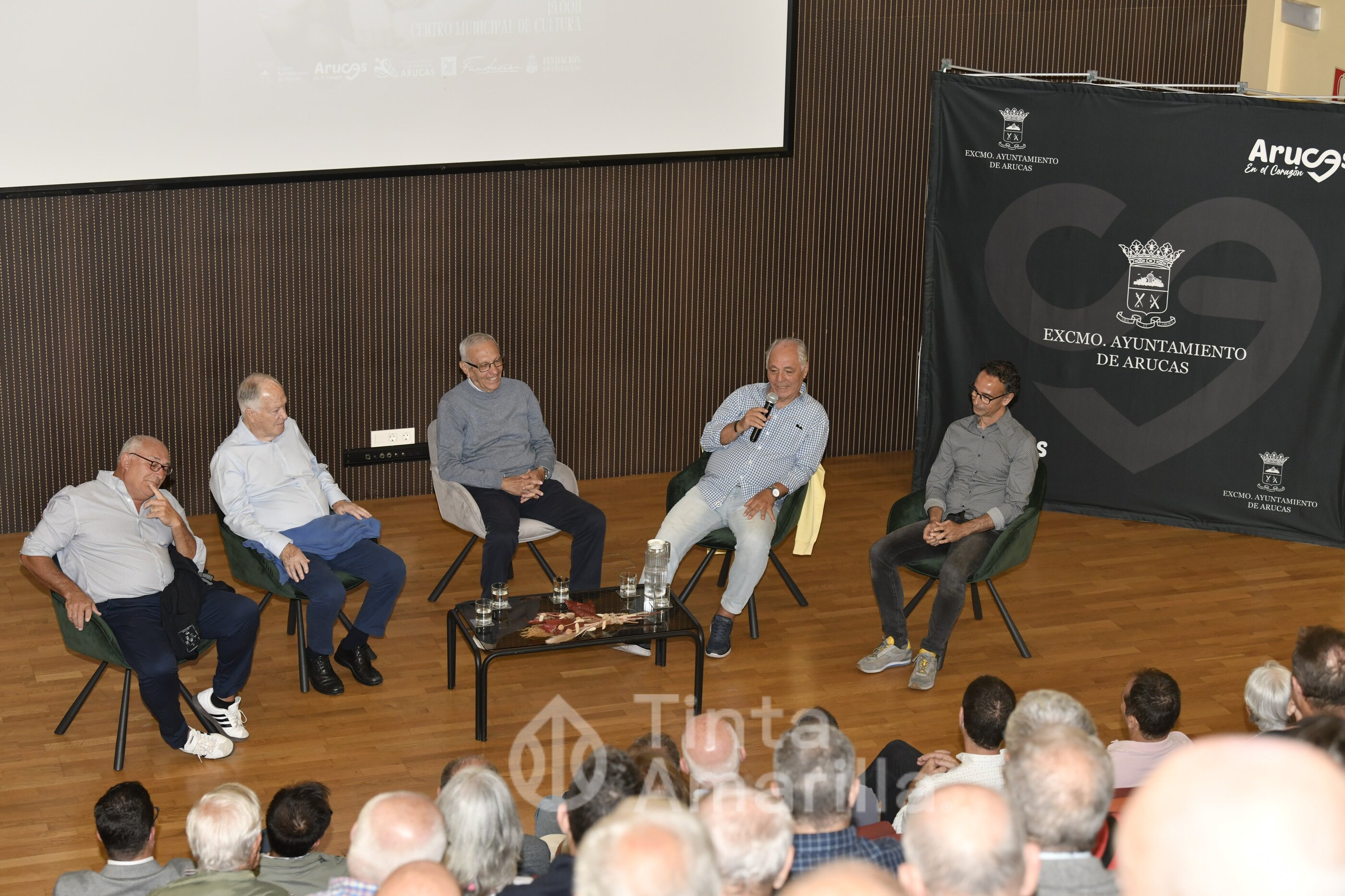 La mesa redonda estuvo compuesta por Germán Dévora-presidente de honor de la UD Las Palmas-, junto a los también ex jugadores Paco Castellano, Noly Afonso, Manolo López y Paquito Ortiz, todos ellos portadores alguna vez del brazalete de capitán como Tonono.
