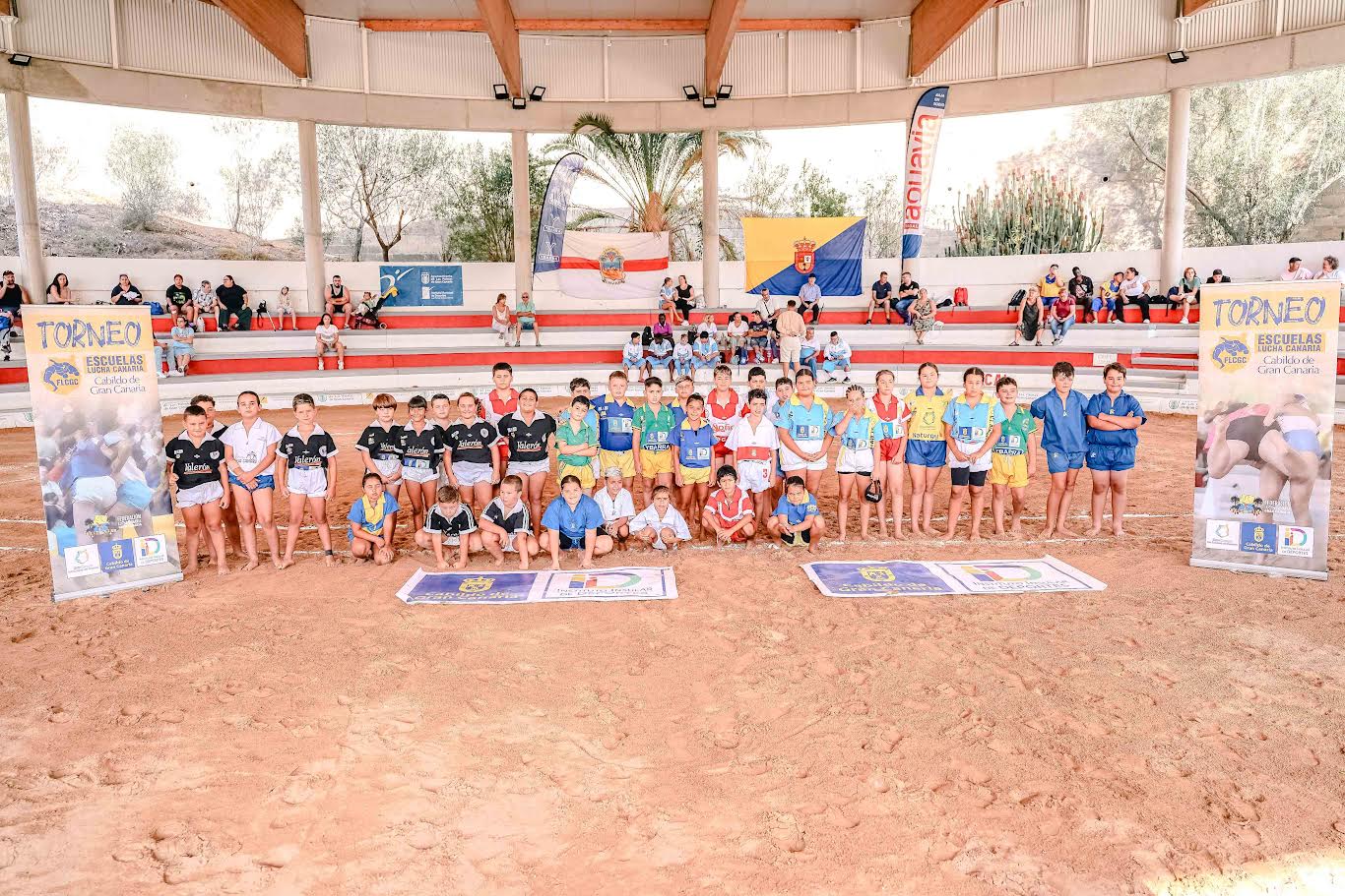 El Terrero de La Presa, en el barrio capitalino de Pedro Hidalgo, fue el escenario donde se celebró el Torneo Final de Temporada de las Escuelas de Lucha Canaria, una cita que reunió a jóvenes luchadores y luchadoras de toda la isla bajo la organización del Cabildo de Gran Canaria y su programa de apoyo al deporte vernáculo, “Cabildo de Gran Canaria con las Escuelas de Lucha Canaria”.