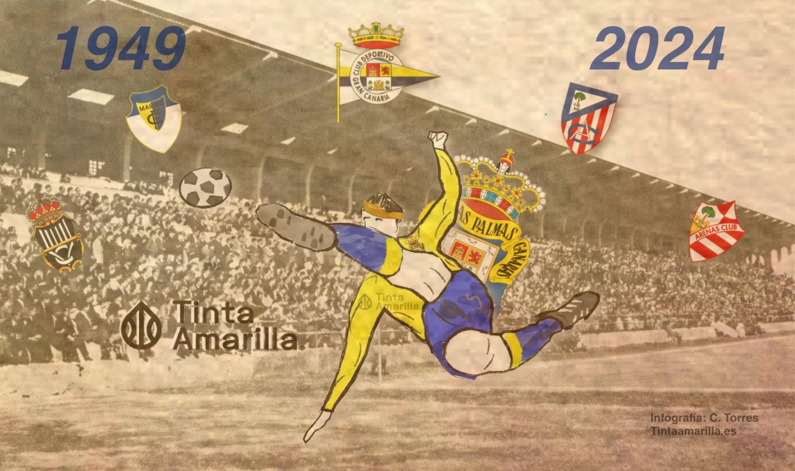 75 años después, la esencia de unidad es la misma. Por el camino, 36 temporadas en Primera División, un subcampeonato y un tercer puesto, primer equipo isleño en llegar a una final nacional, en jugar competición europea, en nutrir a la selección española de piezas internacionales, la afición más numerosa y fiel del Archipiélago … y una casa nueva que camina hacia el Mundial de 2030. Pasado luminoso; futuro ilusionante. Y todo tiene su centro de gravedad porque el equipo grancanario sigue identificando al futbolista canario de las ocho islas.