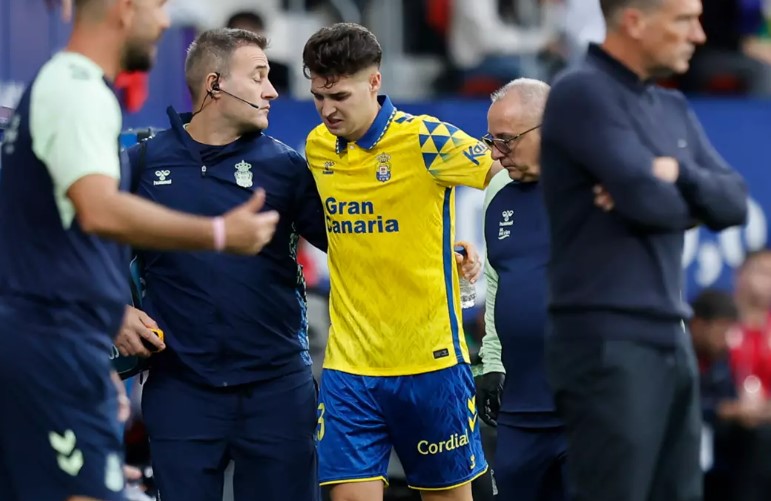 A Mika Mármol le sale cara su lesión frente al Osasuna, en un pisotón de Budimir. El jugador amarillo sufre una fisura en el segundo metatarsiano del pie izquierdo. El tiempo estimado de baja será según evolución, según ha comunicado el club grancanario.