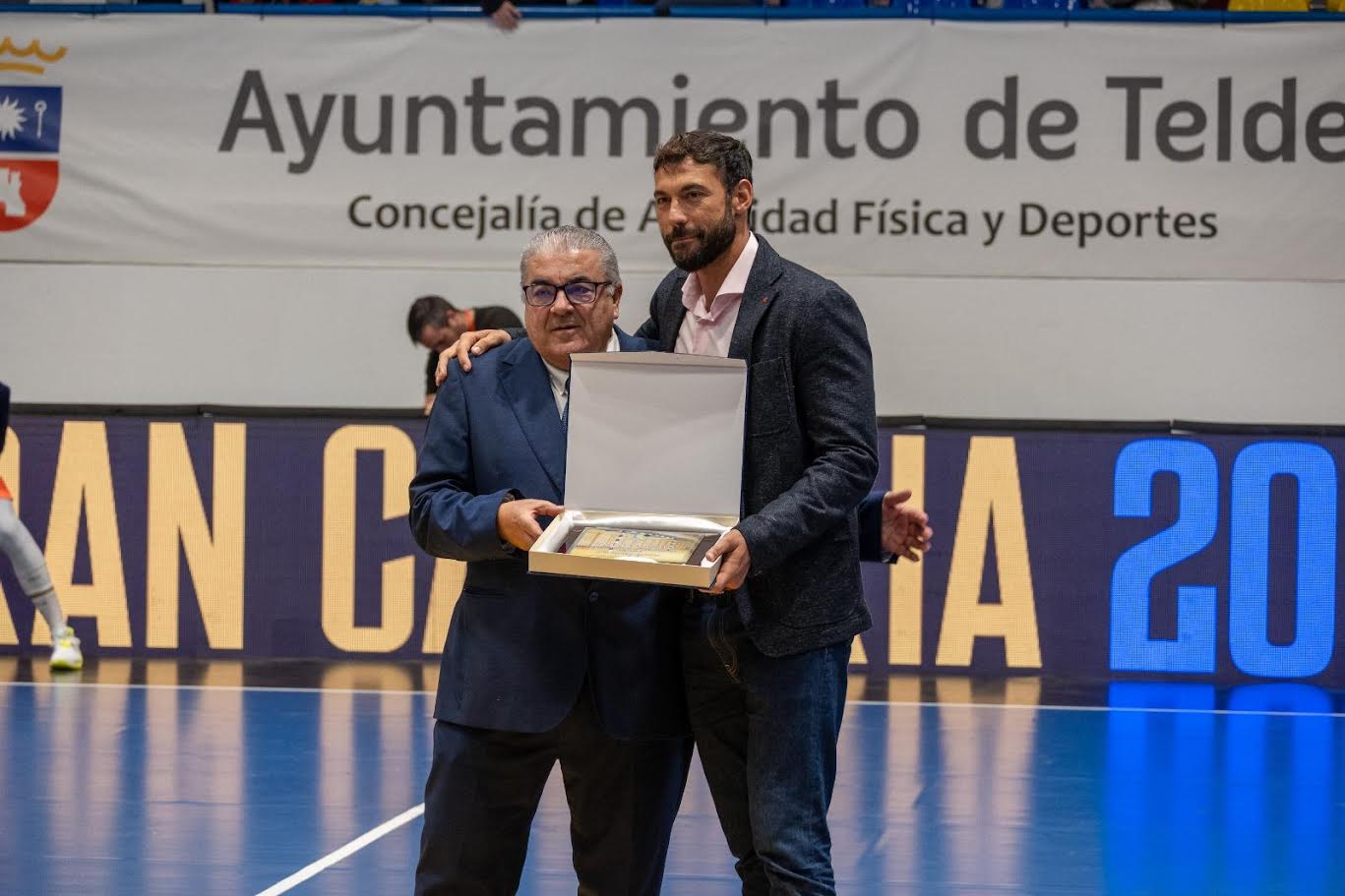 El pabellón Rita Hernández de Telde fue escenario el pasado domingo de un emotivo homenaje a Dani Sarmiento, considerado el mejor jugador masculino de balonmano que ha dado Canarias. El acto se celebró durante el descanso de la final de la Copa de España, encuentro que enfrentó al FC Barcelona y al Recoletas Atlético Valladolid y que se saldó con victoria del conjunto azulgrana por 24-32.