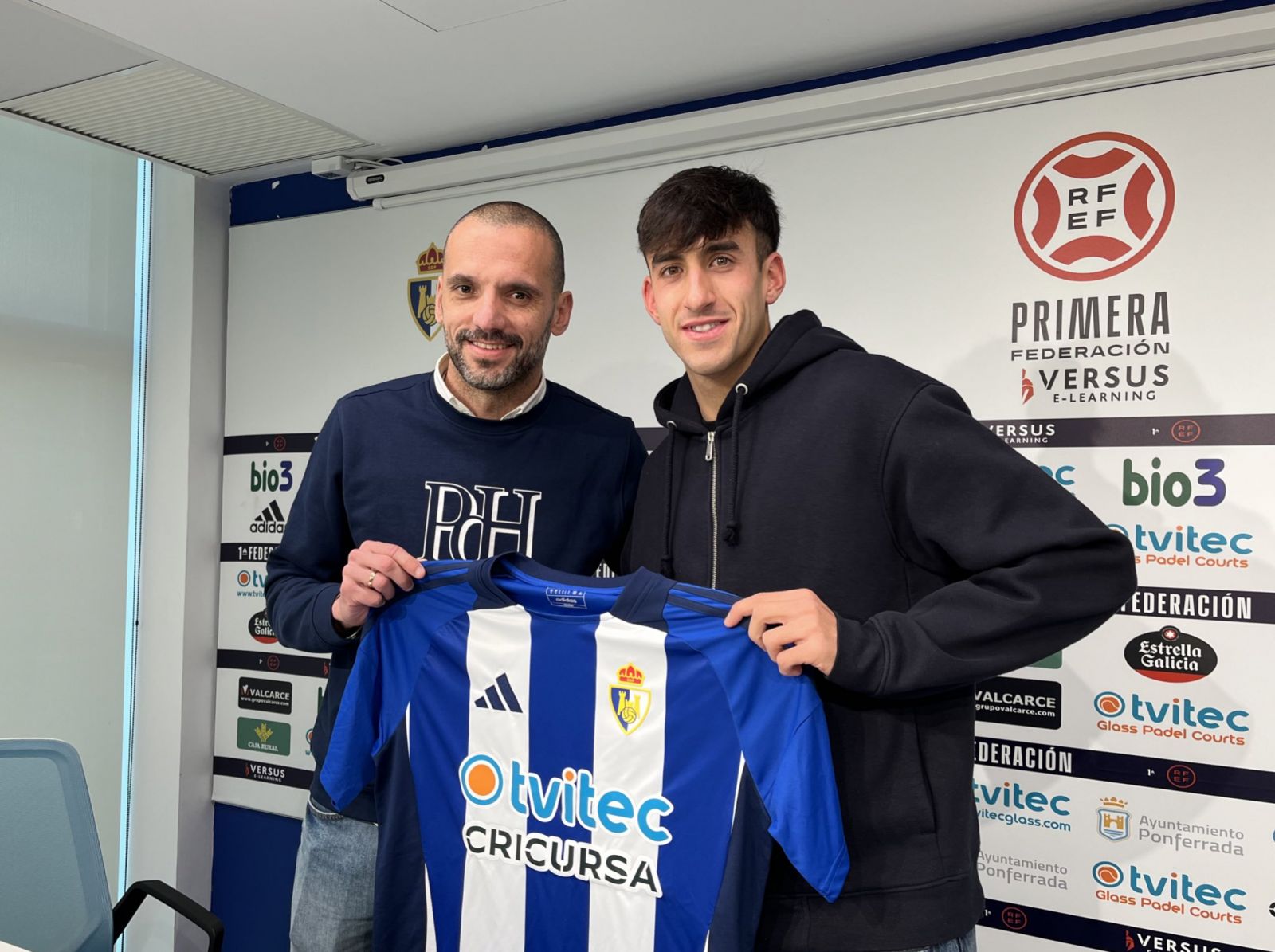 Ellos son Yuri De Sousa y Pau Ferrer. Ambos han vestido el amarillo de la UD Las Palmas y ahora coinciden en El Toralín. Yuri, tras muchos años goleando para la Ponferradina, fue el encargado de recibir a Pau desde su actual cargo en la secretaría técnica. Y Ferrer, cedido por la UD Las Palmas, llega al conjunto berciano para ayudar en Primera RFEF y luego volver al punto de partido. El gol puede también unirles en el tiempo.