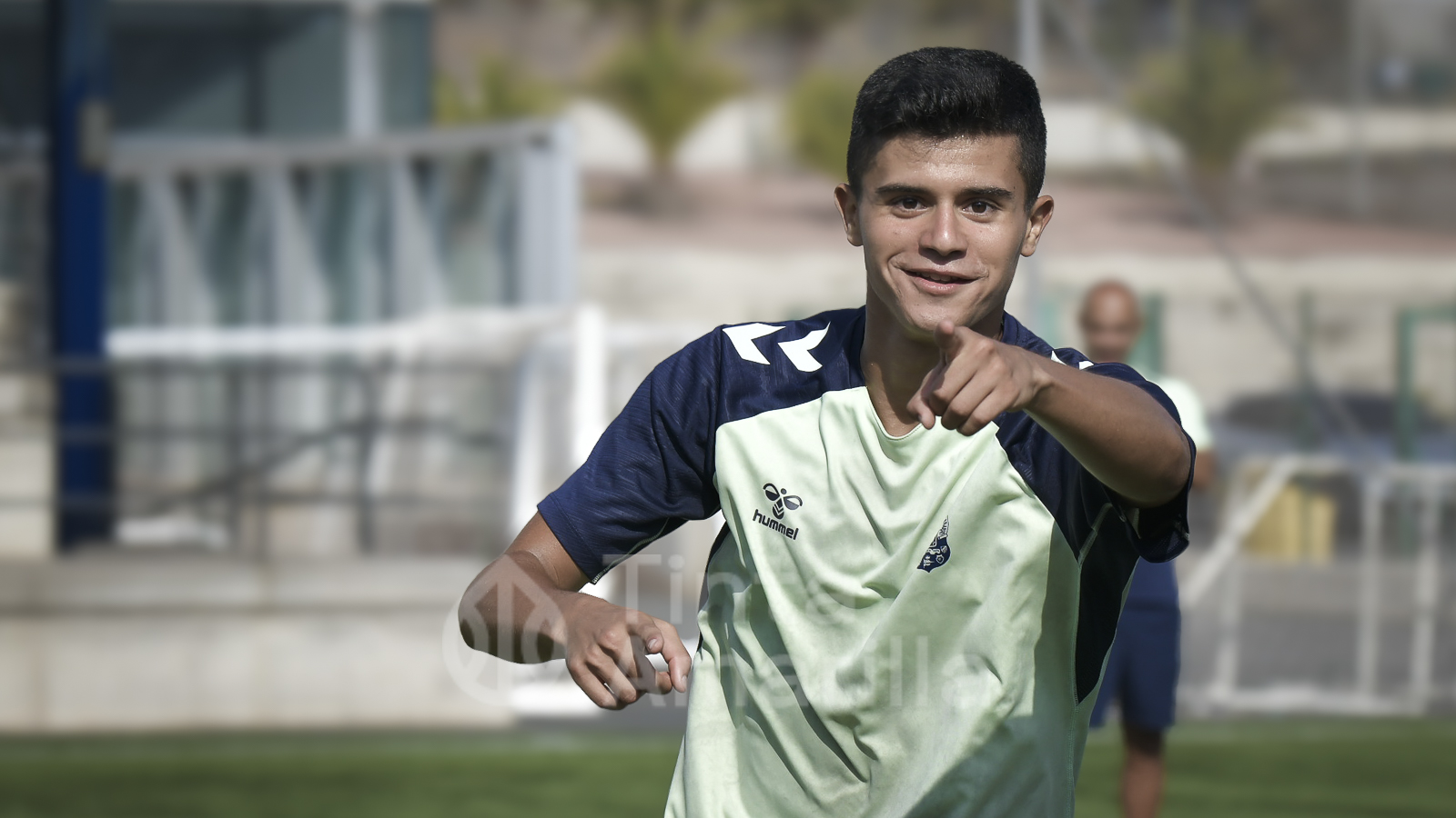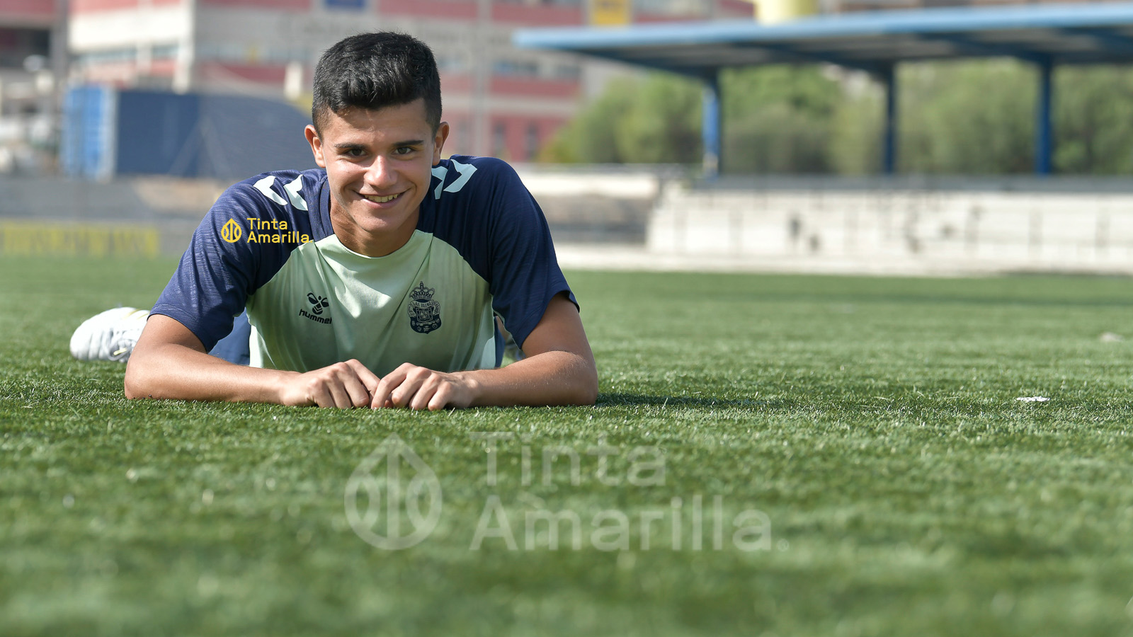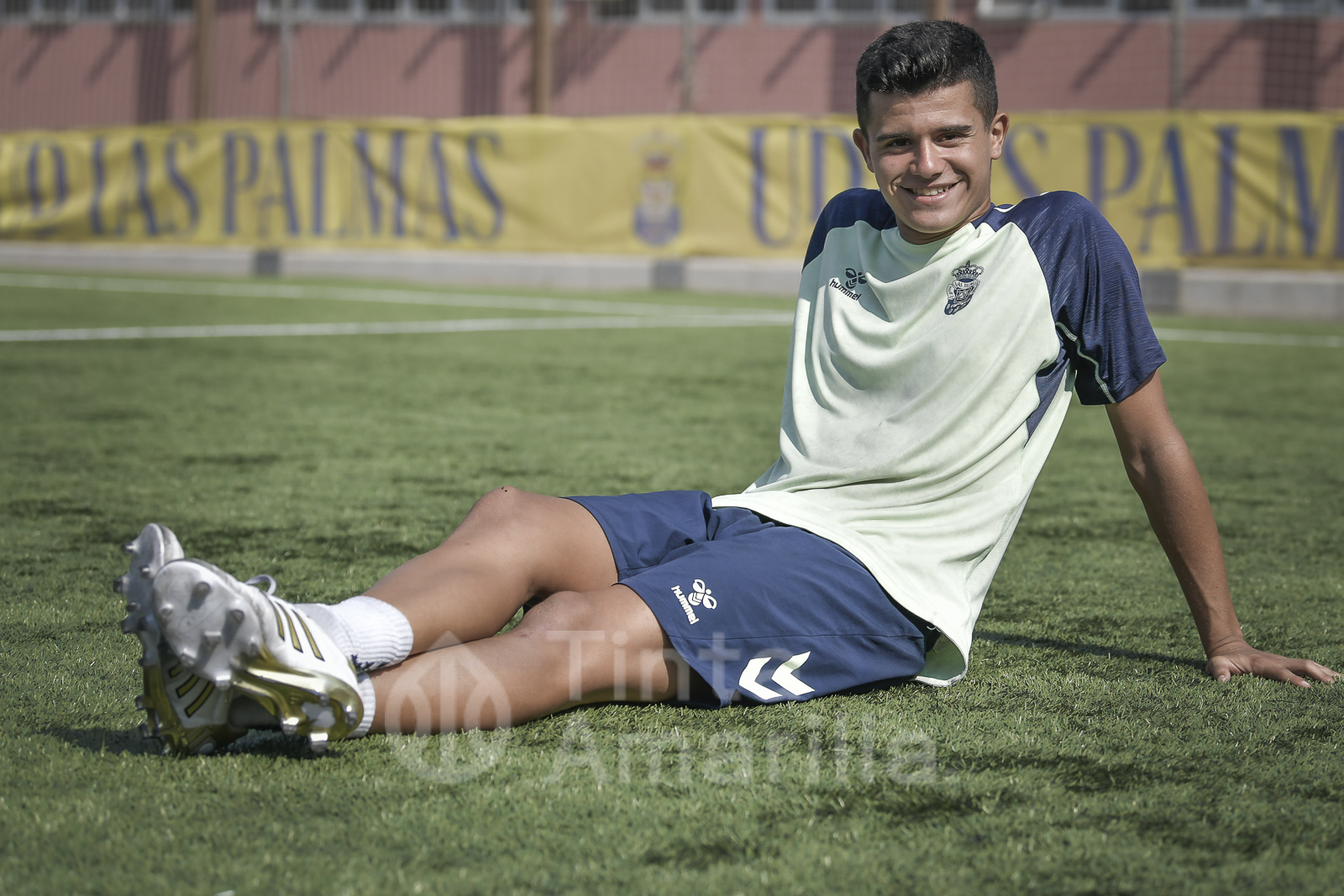 El canterano grancanario lleva doce temporadas en filiales, como incansable defensa lateral: En el juvenil B hicieron su control y promediaba 12 kilómetros en los encuentros. Y su poderío físico sigue en proceso
