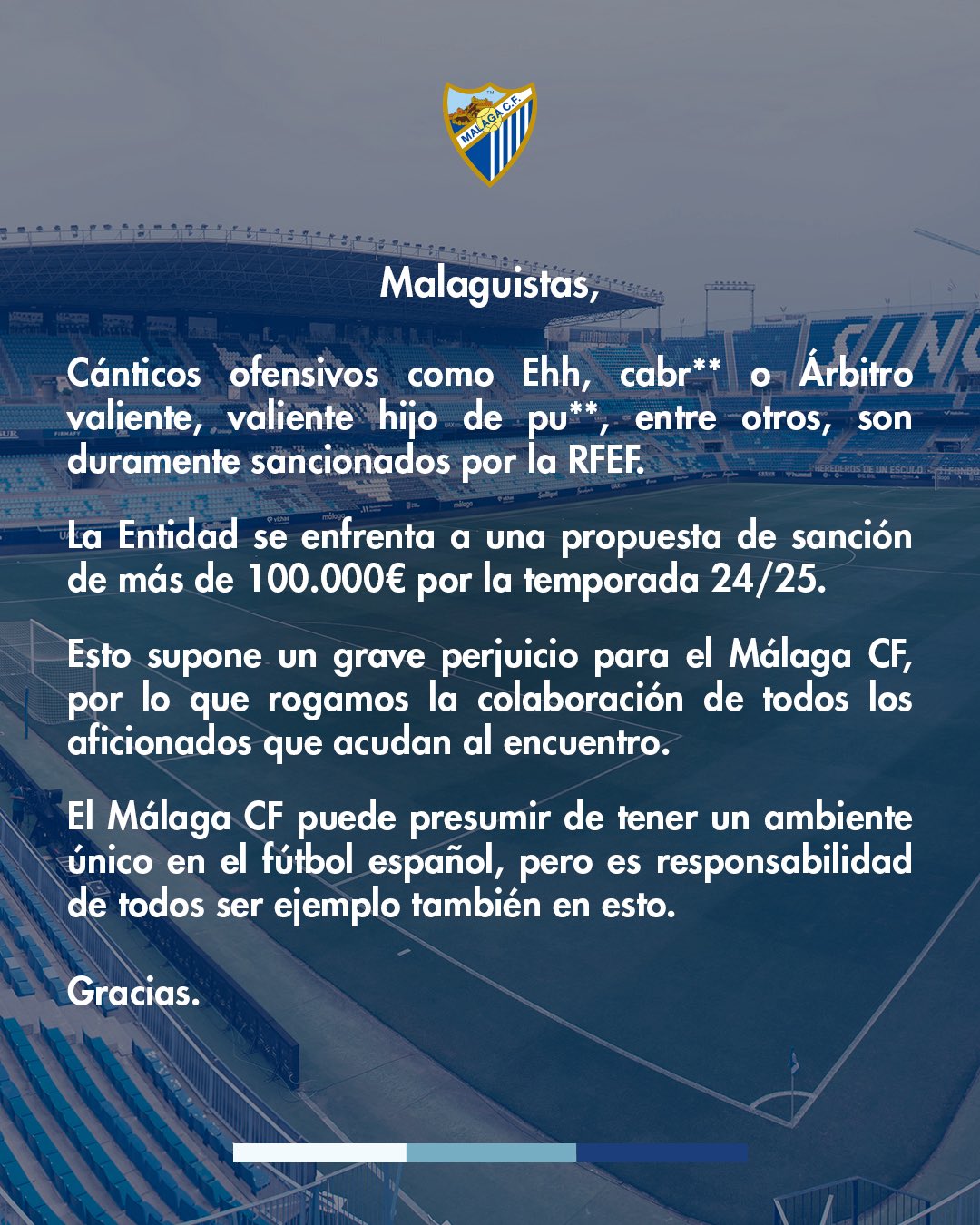 Y horas antes del encuentro se emitió un comunicado público del Málaga dirigido a sus aficionados (bajo estas líneas):