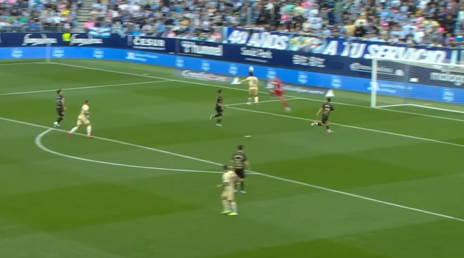 “Nada, nada”, en opinión del colegiado Andrés Fuentes Molina y de su asistente de VAR, Oliver de la Fuente. El portero del Málaga, Alfonso Herrero, atropella físicamente a Taisei Miyashiro en su alocada salida, impactando con su cuerpo (una pierna más elevada) en la espalda del atacante. El japonés había llegado antes por centésimas a tocar el balón de cabeza y el guardameta, casi cerrando los ojos, lo arrolla.