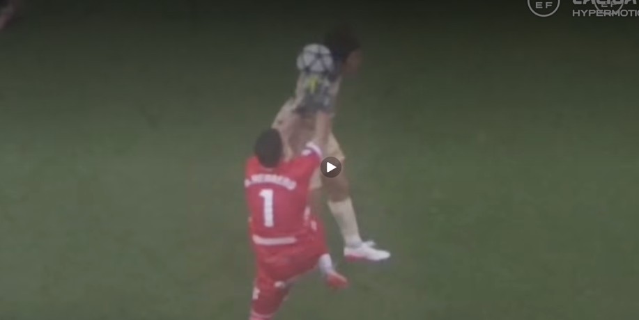 Dice al respecto que “en una disputa aérea, el delantero de Las Palmas se anticipa y cabecea el balón. Y acto el seguido el portero del Málaga, a pesar de tocar el balón, impacta con ambos puños en la cabeza y, elevando la rodilla, golpea con su pierna en la cadera del delantero en un contacto a posteriori”.