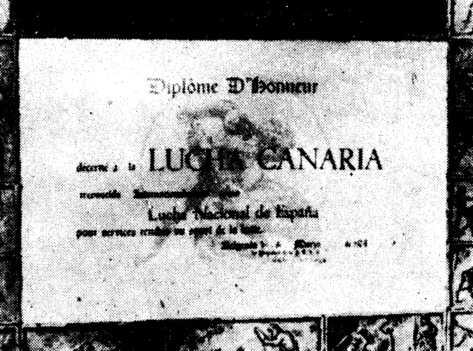 Ese primer reconocimiento internacional fue trasladado en diploma de honor a Jesús Gómez Rodríguez, presidente de la Federación de lucha de la provincia oriental del Archipiélago. Compte recordó los valores del deporte de los terreros y la importancia de sus participantes para incorporarse a las distintas modalidades internacionales. “Conozco todas las luchas vernáculas, puedo decir que la de Canarias está muy por encima de ellas” (…) “La Federación Española está dispuesta y de hecho lo está haciendo al promocionarla a nivel nacional”, manifestó según recogen los diarios de la época. | ![]() |