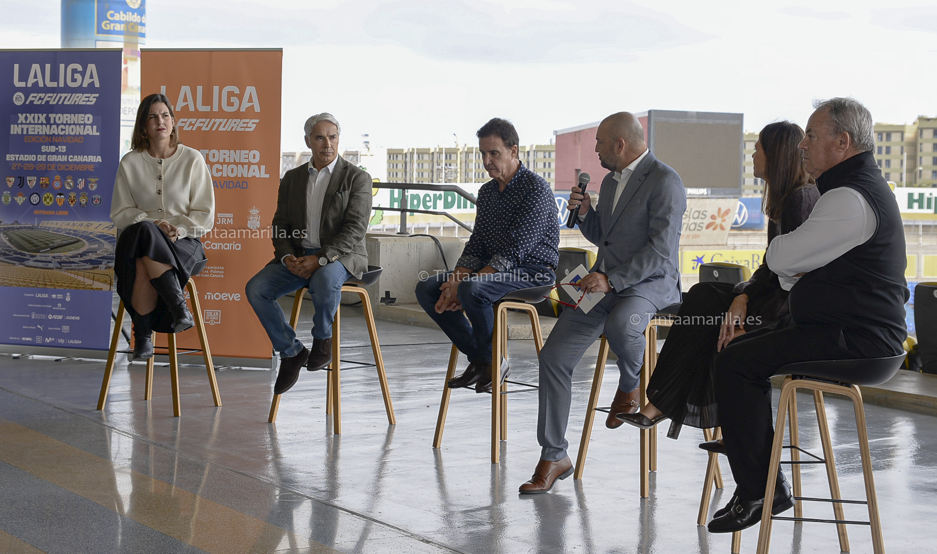 También intervinieron en la presentación la concejala de deportes del Ayuntamiento de Las Palmas de Gran Canaria, Carla Campoamor; la directora de Activación Corporativa de LaLiga, Cristina Sánchez; y el promotor del torneo, Domingo Espino. Cifraron entre 1.500 y 2.000 personas las que vendrán al evento en el que 16 conjuntos van a participar, con la UD Las Palmas representado a la cantera de Canarias. “El Belén de verdad estará en Gran Canaria, que es un escenario acoj….”, concluyó De la Morena.