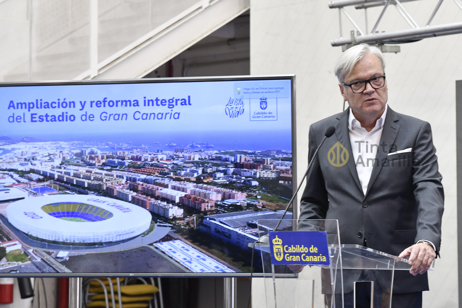 “Hace diez años se inauguró el Gran Canaria Arena con una inversión entre 80 y 90 millones de euros. Nadie duda en la actualidad la idoneidad de aquella actuación y lo que ha supuesto para Gran Canaria”, recordó antes de exponer la misma identidad para el proyecto del Estadio.