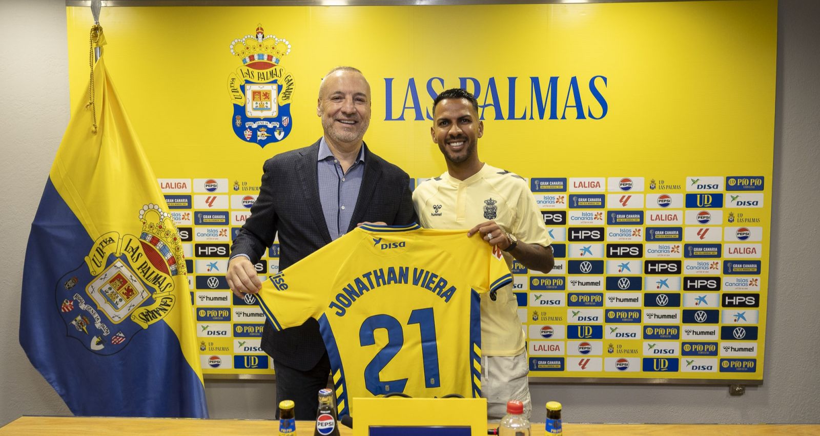 Jonathan Viera (35) fue presentado este domingo como nuevo refuerzo de la UD Las Palmas. Aclaró que todas las partes han llegado a un acuerdo y matizó que “si Helguera no hubiese querido mi vuelta, habría estado en mi casa”.