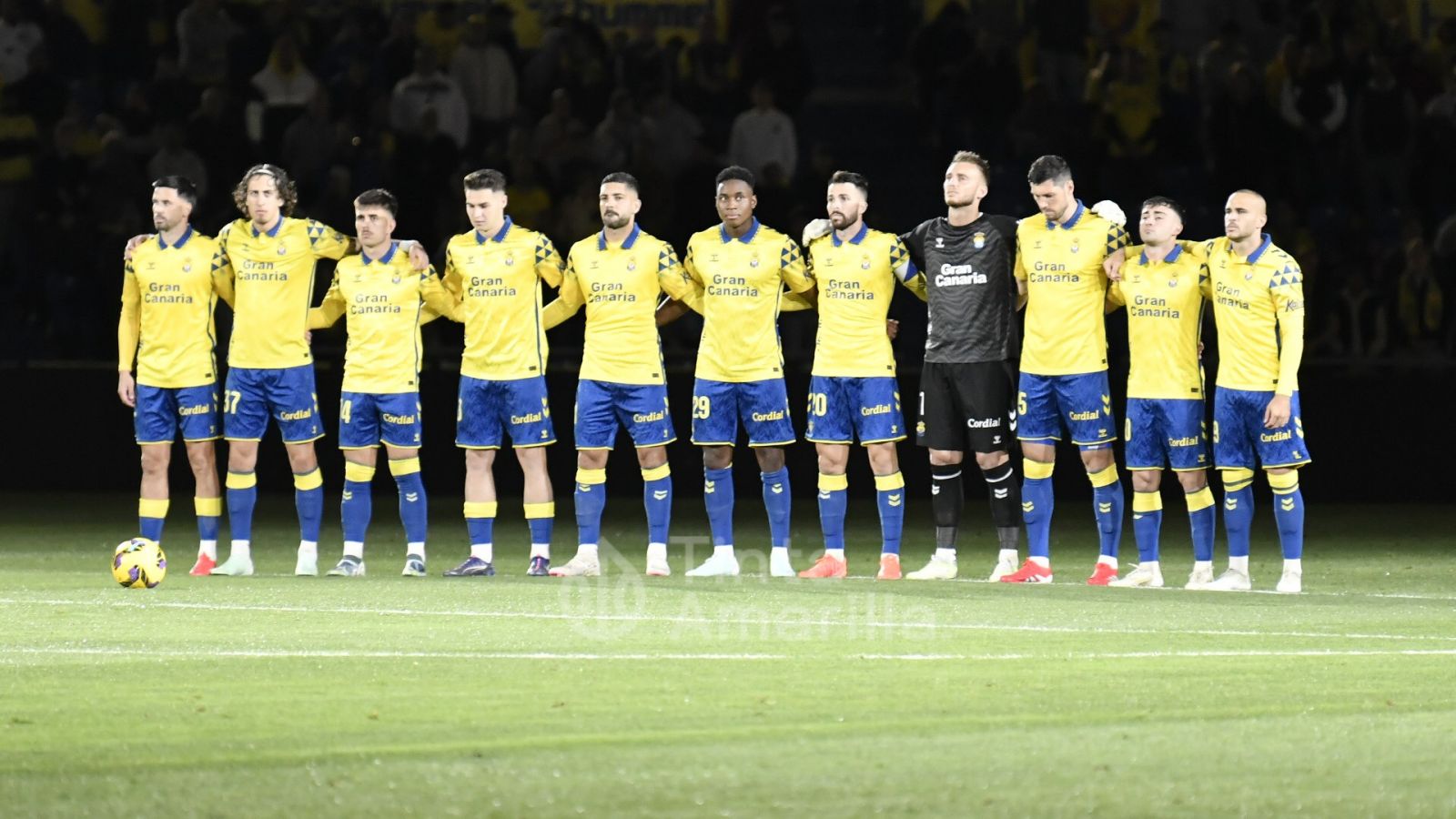 El once de Las Palmas, antes del partido contra Osasuna (C. Torres)