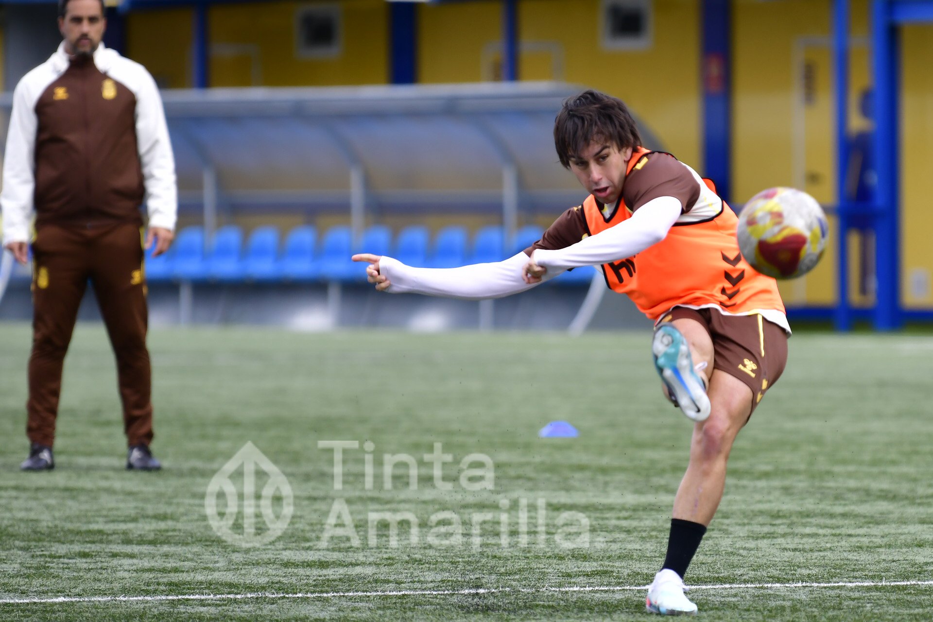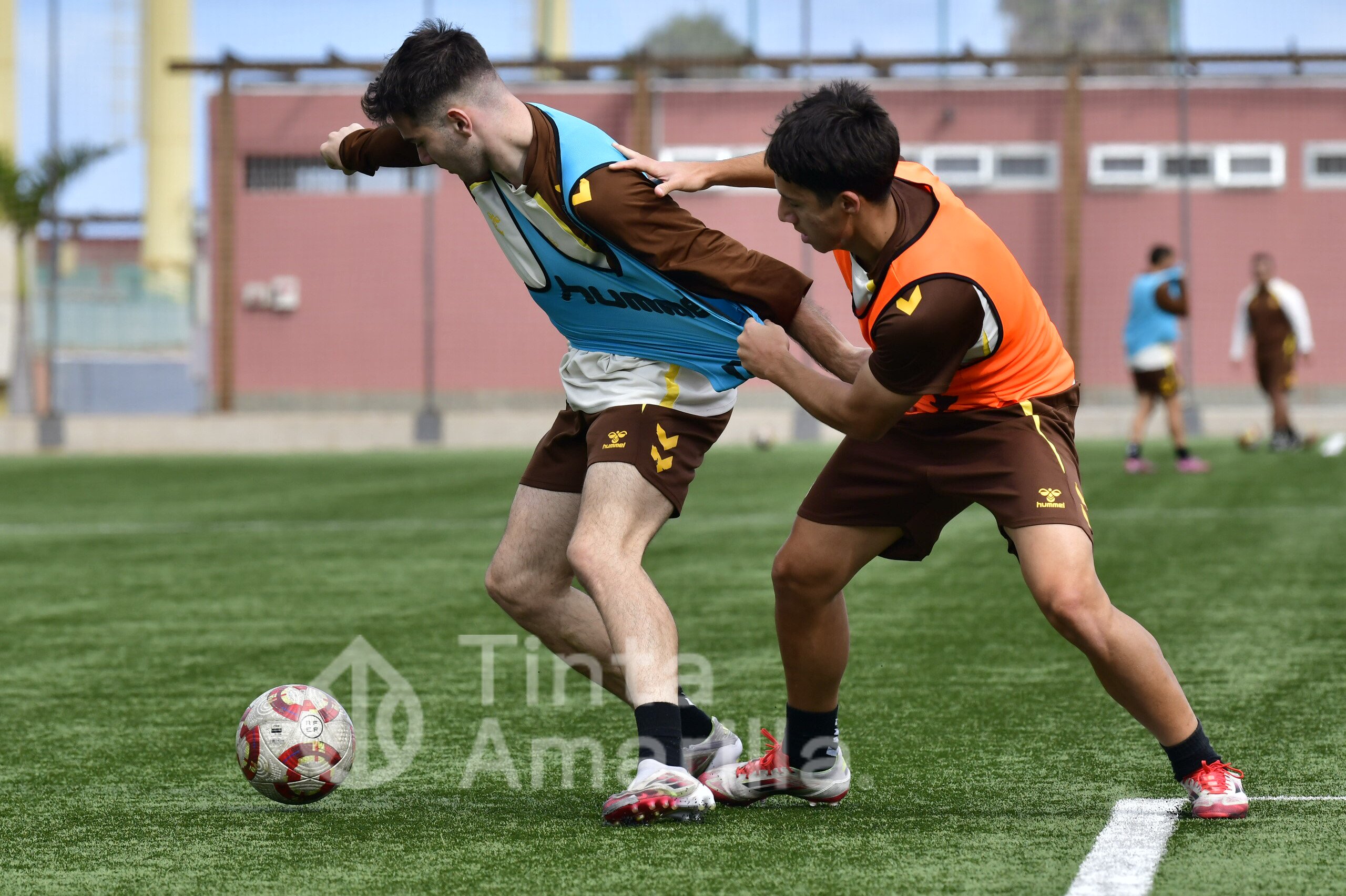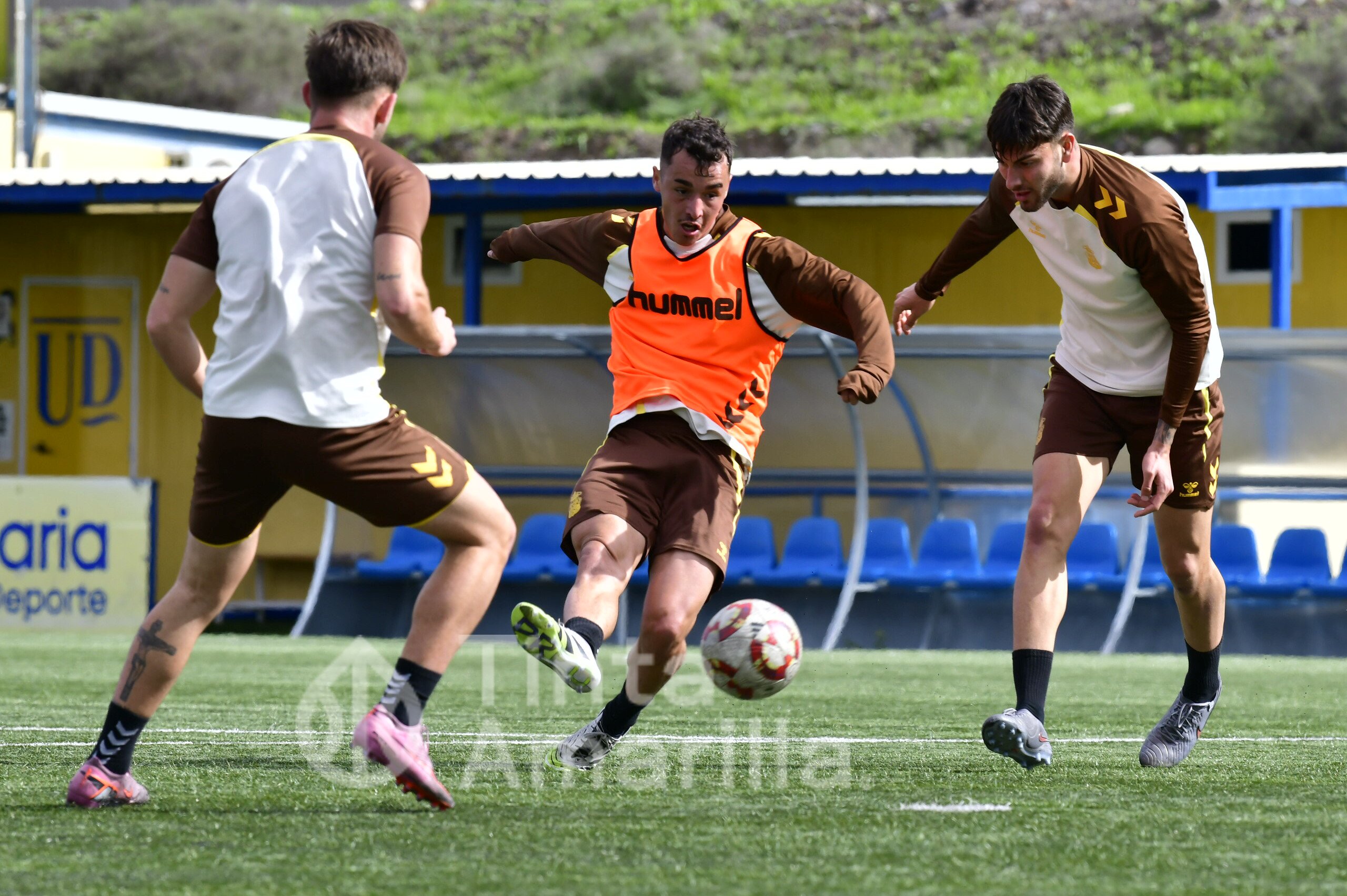 Las Palmas Atlético prepara el derbi de filiales frente al Tenerife B con su nuevo refuerzo, Cacho, integrado en el grupo de Raúl Martín.