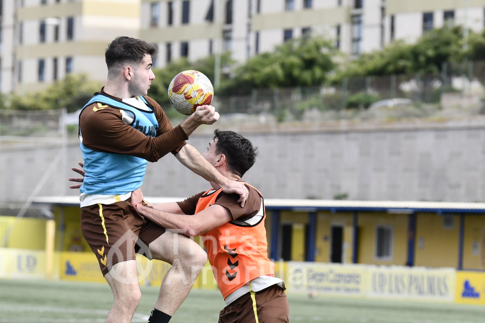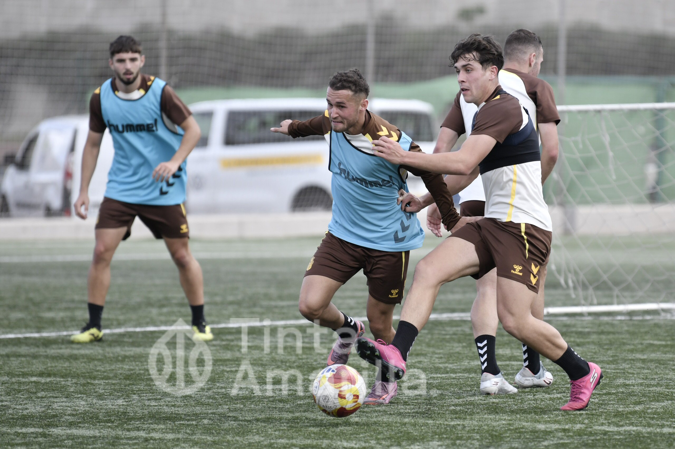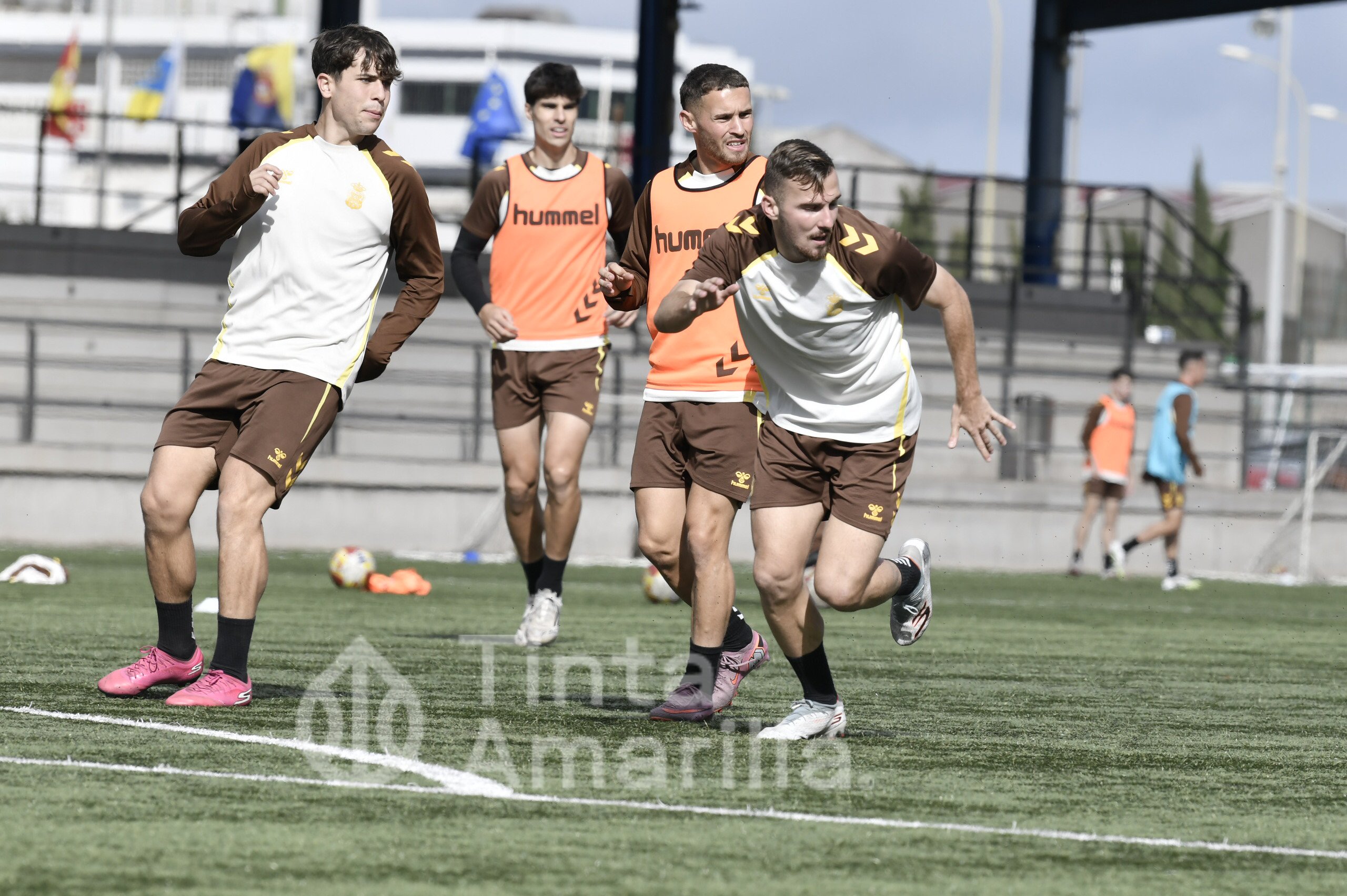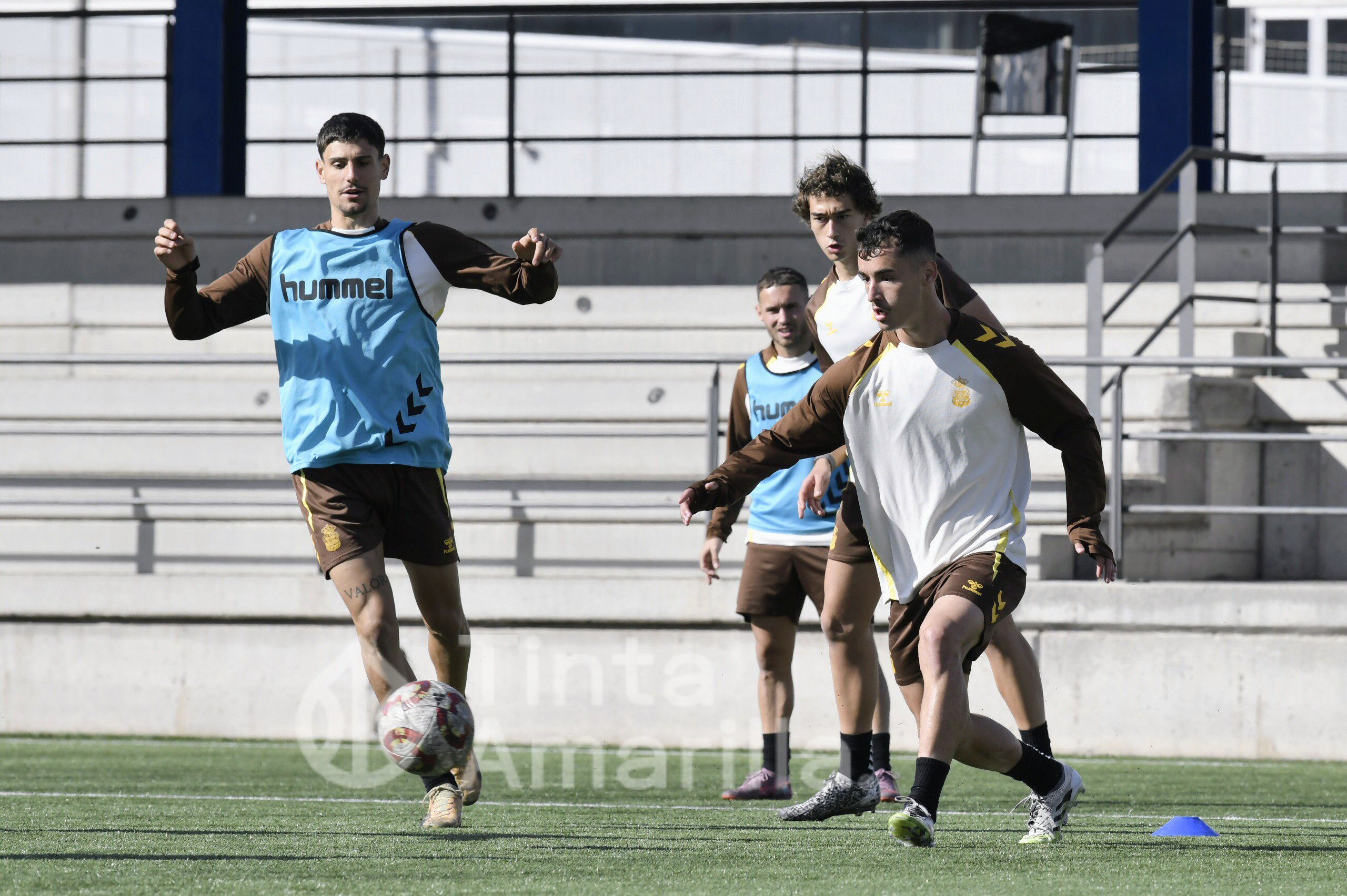 Las Palmas Atlético prepara el derbi de filiales frente al Tenerife B con su nuevo refuerzo, Cacho, integrado en el grupo de Raúl Martín.
