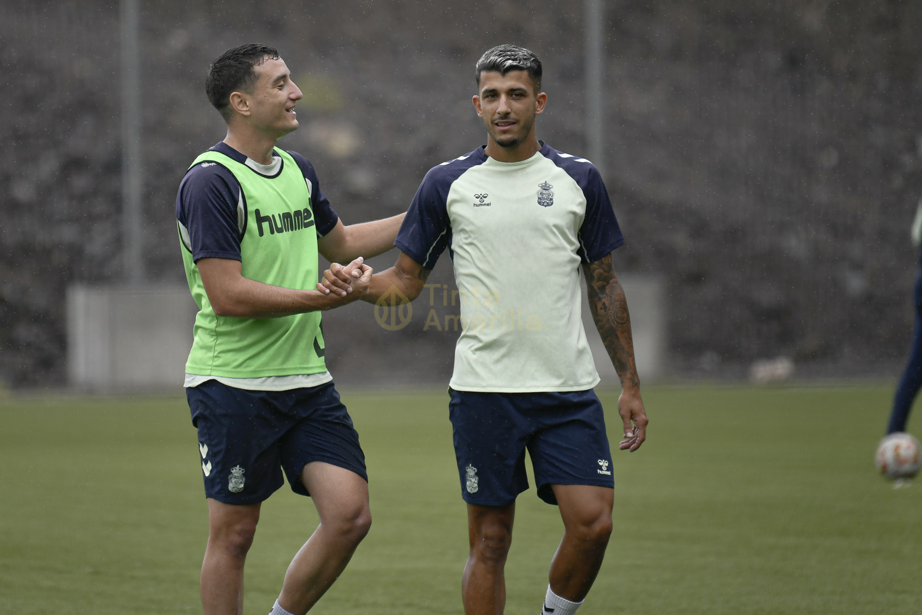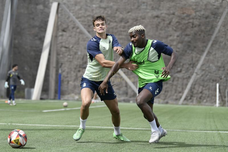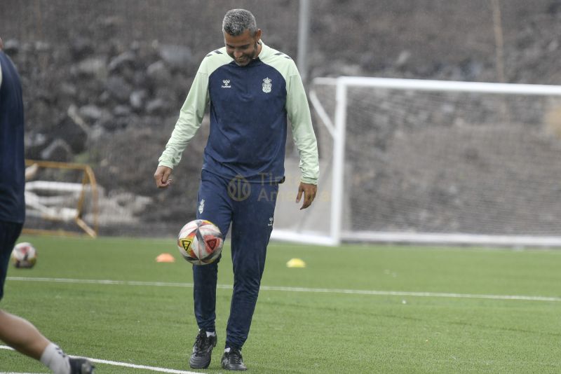 Los futbolistas de Raúl Martín disfrutaron de un martes con sol y lluvia en Barranco Seco. Todos quieren estar disponibles para el técnico en una jornada en la que se espera gran ambiente en las gradas del estadio Anexo al Gran Canaria.