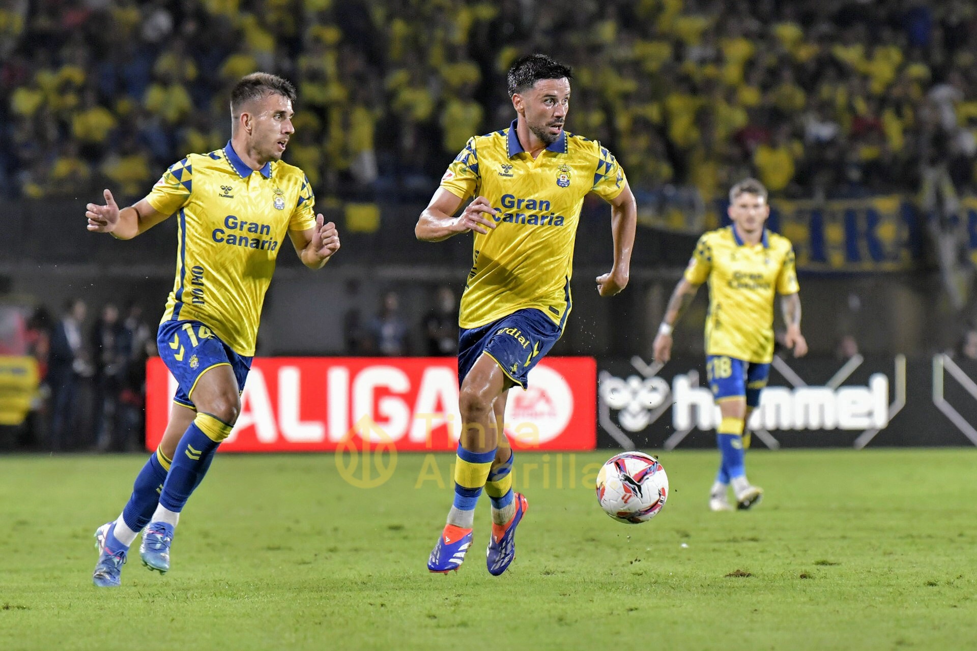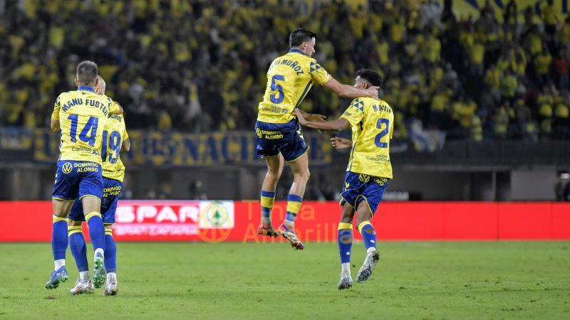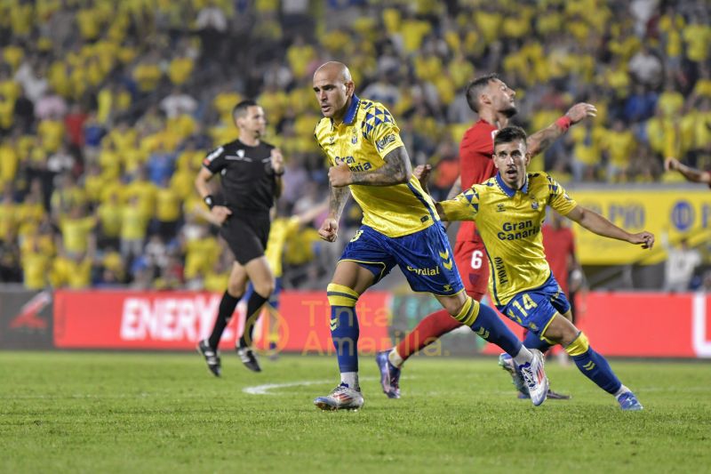 La celebración de Sandro y Kirian, tras el empate 2-2 de este viernes (C. Torres)