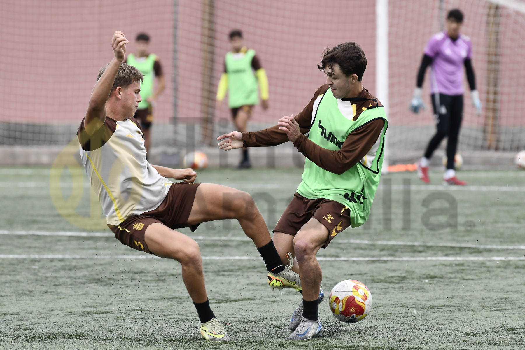 El segundo filial de la UD Las Palmas, Las Palmas C, se prepara con lluvia racheada para su último encuentro de Liga de 2025. Será en La Palma, frente a la histórica SD Tenisca, el domingo a las 11.30 horas.