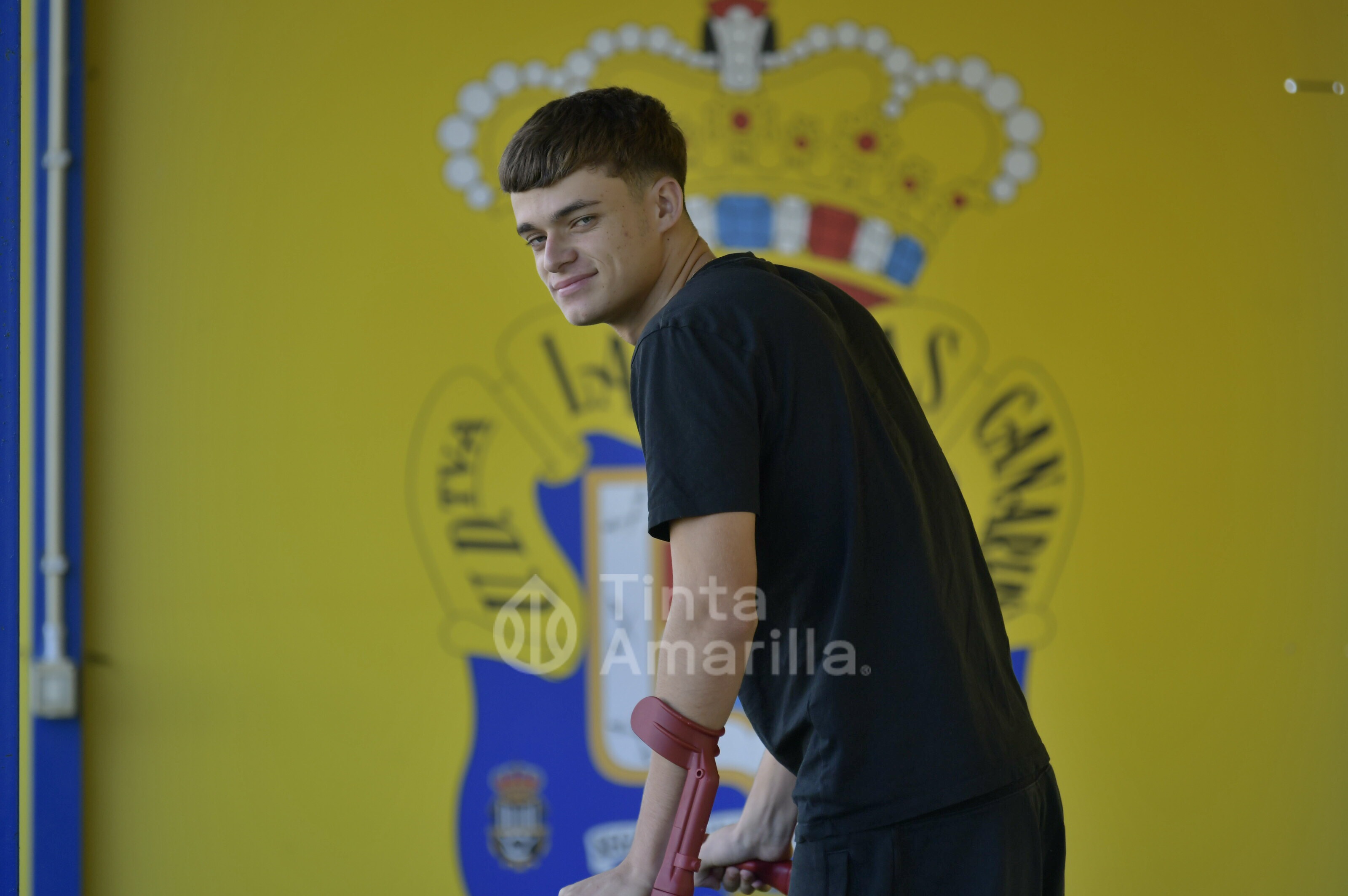 Los futbolistas de José Antonio Robaina se ejercitan, contando en las instalaciones con la presencia del delantero lesionado Tomás Medina, que está en el inicio de su recuperación tras la reciente operación quirúrgica.