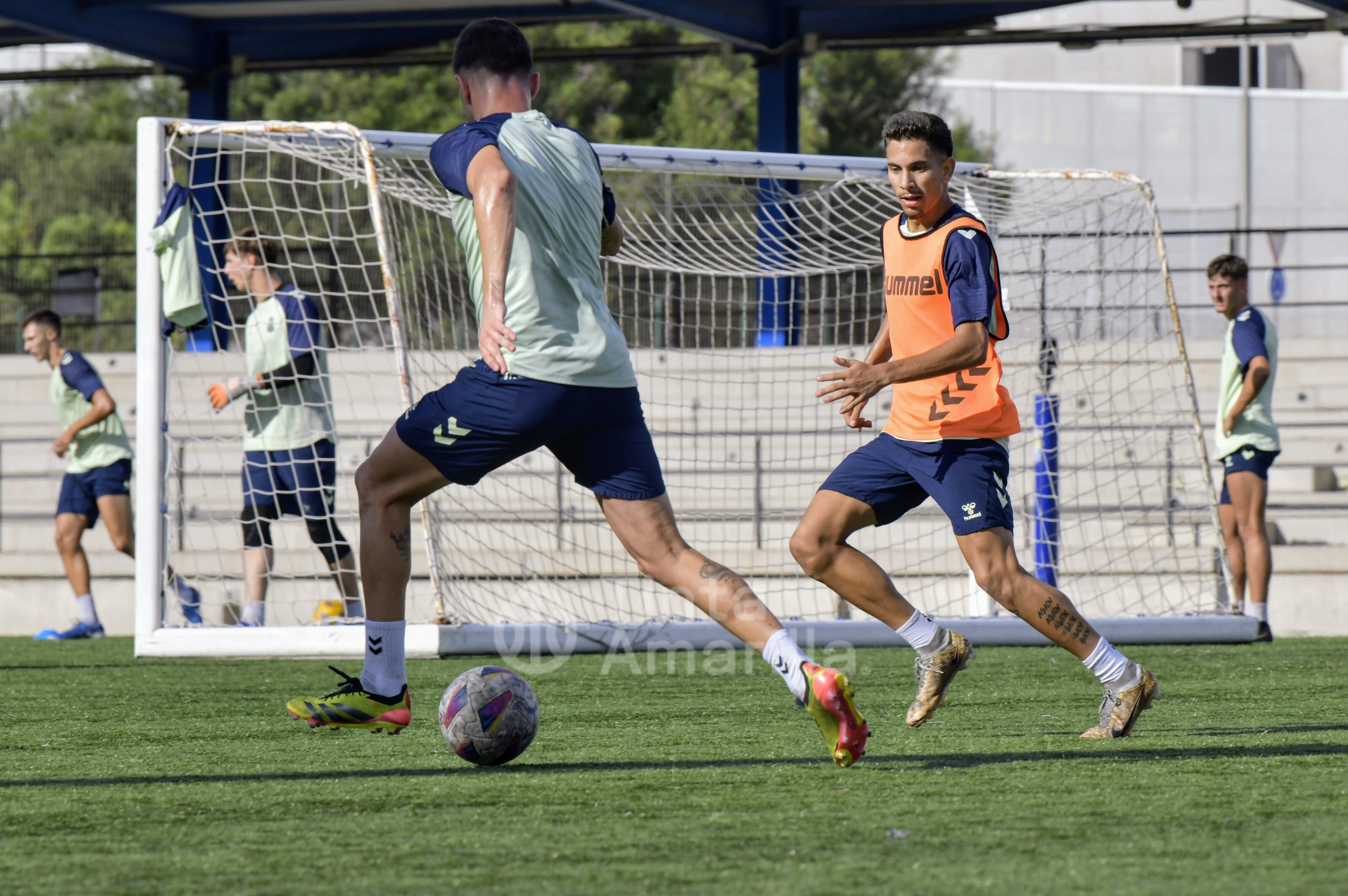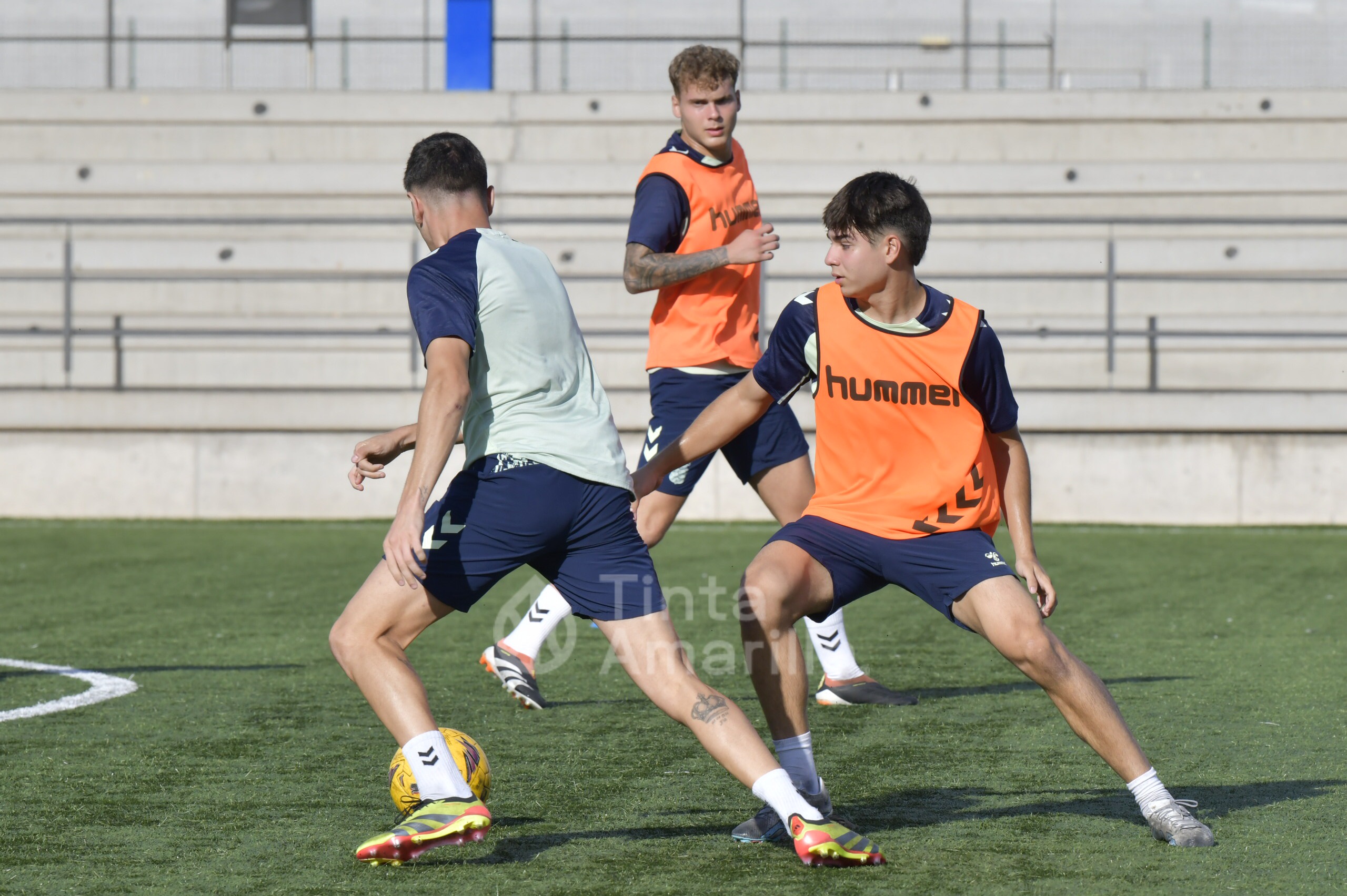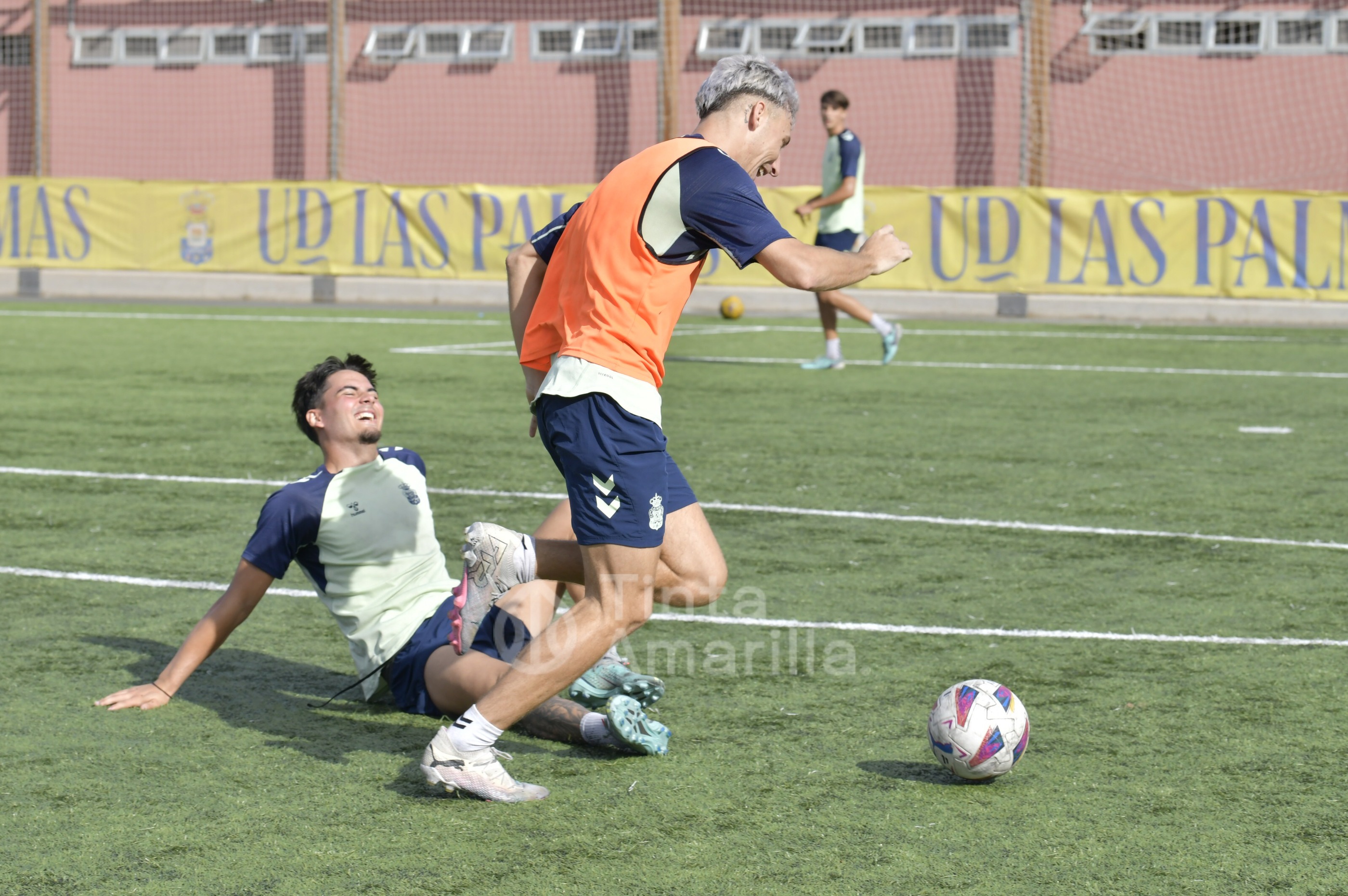 Los futbolistas de José Antonio Robaina se ejercitan, contando en las instalaciones con la presencia del delantero lesionado Tomás Medina, que está en el inicio de su recuperación tras la reciente operación quirúrgica.