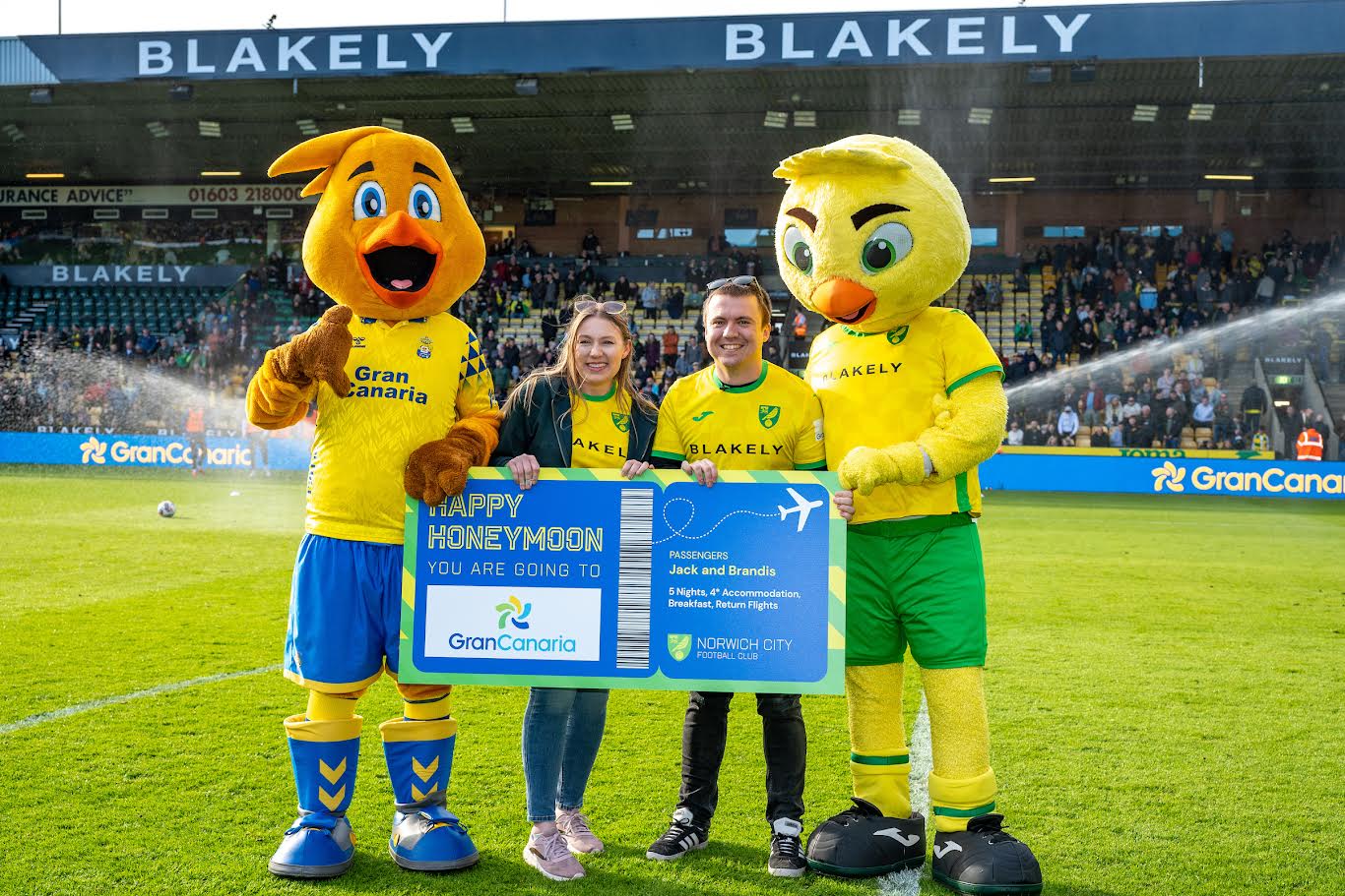 Durante el desarrollo de esta iniciativa, el estadio Carrow Road se vistió de gala con la imagen de Gran Canaria presente en todas las pantallas y banners del campo. Además, se instaló una estructura con un estand y punto de venta de vacaciones en colaboración con Jet2Holidays y AV Premier Travel, el partner de Jet2 en la zona. Esta instalación ofreció a los asistentes la oportunidad de planificar su próxima escapada a la isla. Entre los seguidores del club, se realizó un concurso premiado con un viaje para dos personas a Gran Canaria, que incluye cinco días de vacaciones para vivir una experiencia inolvidable. Esta iniciativa se realizó sobre el césped e incluyó una pedida de mano.