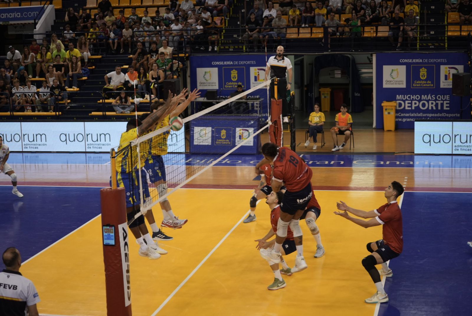 El conjunto grancanario cedió el primer set 21-25, pero luego superó al tinerfeño por 25-16, 25-15 y 25-18.