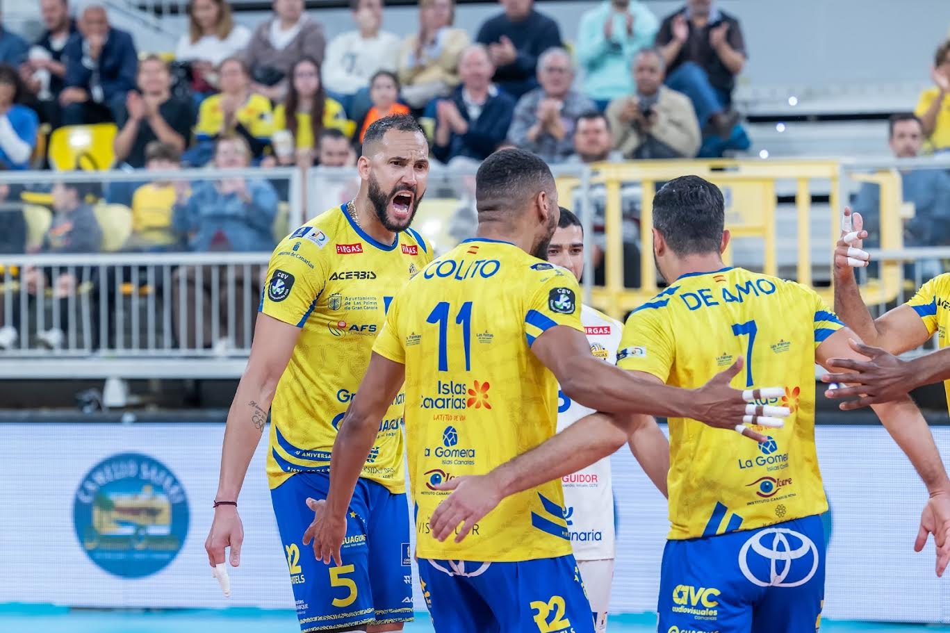 También tuvo palabras para su compañero de equipo, Walla Souza, lesionado durante el primer set: “Estamos contentos por la victoria, aunque jodidos por Walla, esperemos que el alcance no sea grave. Y también aprovecho públicamente para felicitar a Colito, porque no es fácil entrar desde el banquillo y hacer lo que hizo”. Además, destacó el ambiente vivido: “Muy bonito ver tanta afición. Es la primera vez que lo vivo así desde que estoy aquí en Gran Canaria”.