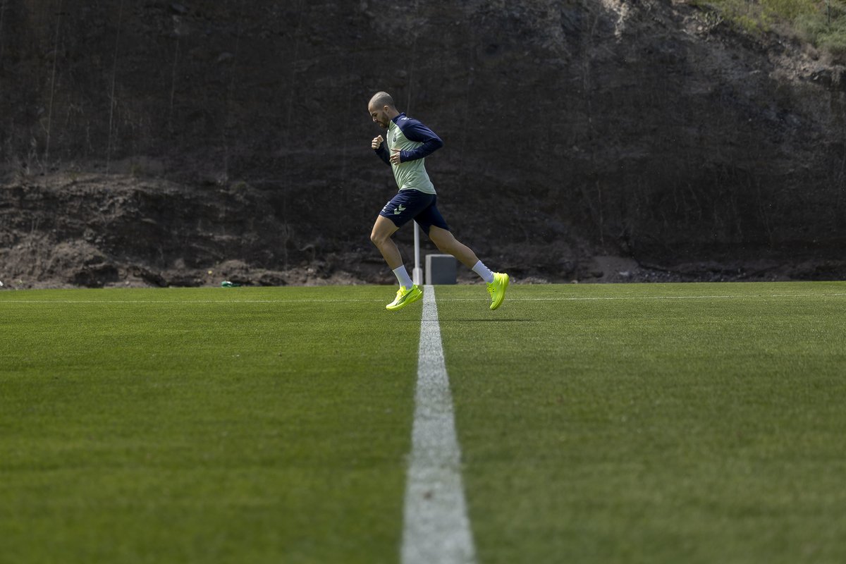 Una escena para cargar energía. Es Kirian, en solitario, trotando en Barranco Seco este lunes. Su baja médica no le aleja del equipo. El pasado viernes apareció tras el empate frente al Alavés para calmar las aguas, que estaban algo agitadas por la decepción del marcador. Y días después vuelve a vestir prendas deportivas para seguir con su plan de recuperación, con supervisión de los médicos.