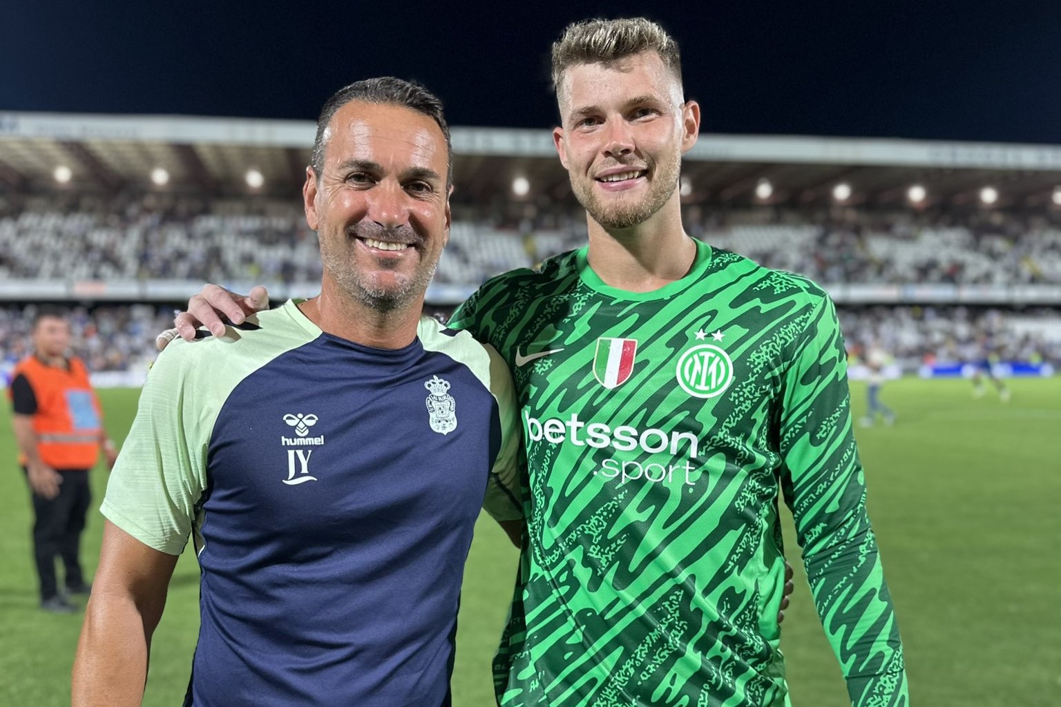 Josep Martínez de las manos de Cicovic en el filial a las de Yepes en el equipo profesional de la UD Las Palmas. El meta valenciano metió en su mochila todos los consejos de sus mentores deportivos. Y de Las Palmas pasó al Leipzig, luego Génova y ahora Inter de Milán. Yepes y Josep se reencontraron en Cesena. Y posaron, porque la amistad siempre queda. Y el agradecimiento también.