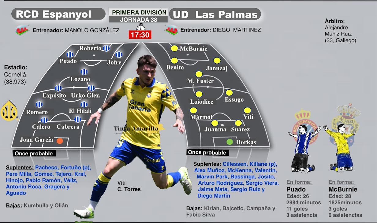 El de este sábado es un partido sin contenido para la UD Las Palmas, al menos clasificatorio. No tendría que haber acabado así, pero la deriva de la Liga ha hecho que los amarillos estén en una cita descafeinada para ellos y muy importante para el RCD Espanyol.