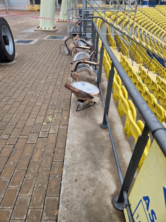 En total, se instalarán 204 nuevos proyectores. De ellos, 104 se ubicarán en la cubierta de tribuna, mientras que 70 de ellos se instalarán en las dos torretas situadas en los extremos de la grada Sur del Estadio de Gran Canaria (35 en cada una), y los 30 focos restantes se pondrán en la nueva torre.