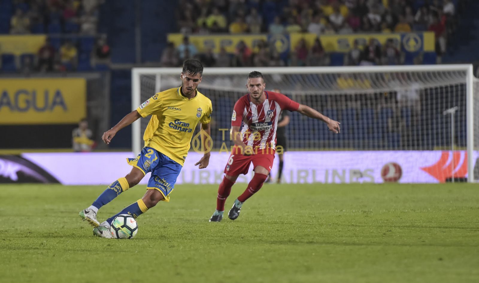 Fabio, frente a Koke Resurrección, el día de su debut oficial como jugador de la UD Las Palmas (C. Torres)