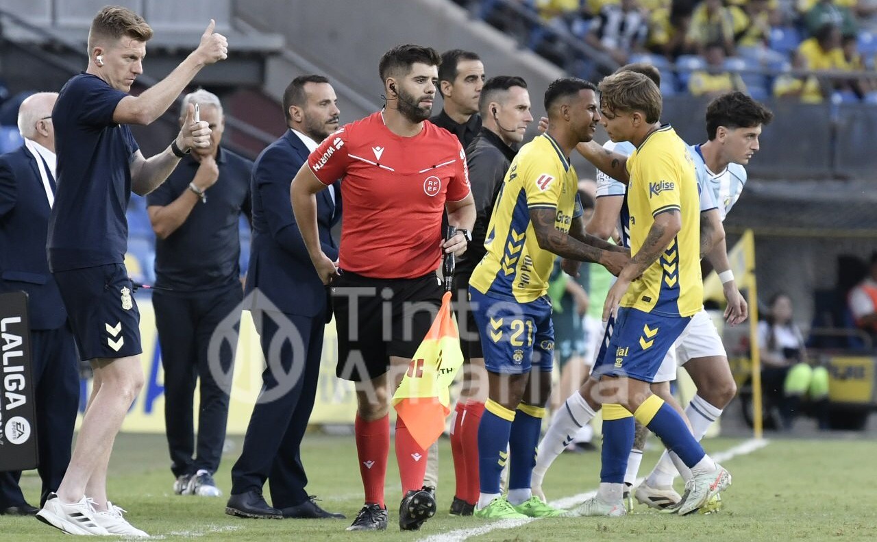 Los jugadores de la UD Las Palmas se sintieron perjudicados por los seis minutos de consulta y decisión contraria del VAR.