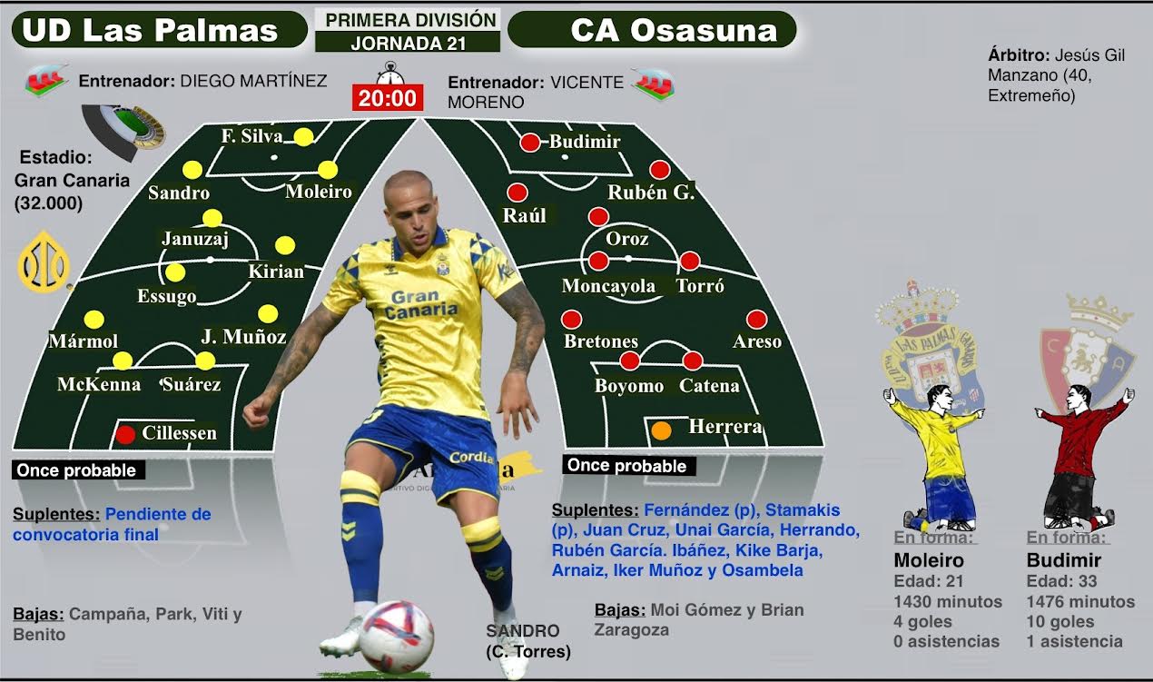 Pero aquellas heridas no deben condicionar lo que va a suceder en una etapa del campeonato donde puede llegar la tranquilidad o emerger la inquietud. Las Palmas reciba a un rival que también tiene sus propios debates porque ya son ocho las jornadas en competición en las que no logra ganar. Y en Pamplona se habla de la visita a Gran Canaria como una oportunidad para restablecer la buena dinámica.