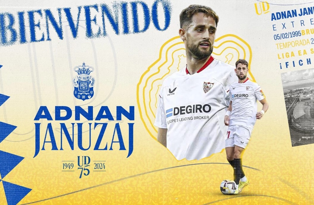 El extremo belga Adnan Januzaj (Bruselas, nacido 05 de febrero de 1995) ha sido confirmado este miércoles como nuevo jugador de la UD Las Palmas cedido por el Sevilla.