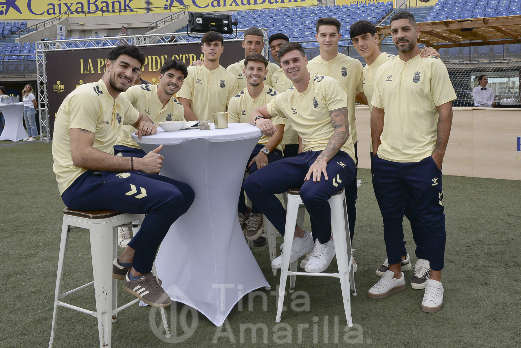 UD Las Palmas y Cervezas Pío Pío, una sociedad que tiene un andar de largo recorrido. Este jueves se escenificó un nuevo episodio de esta relación, en un acto que congregó a centenares de personas de la sociedad grancanaria y miembros del club, encabezados por su consejo de administración. Incluso la plantilla profesional del club y el cuerpo técnico asistió a la concurrida cita.