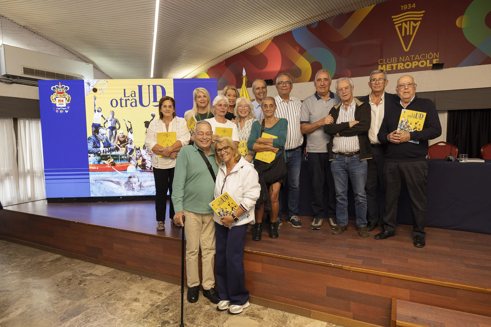 El calendario del 75 Aniversario de la fundación de la UD Las Palmas tuvo continuidad este jueves en los salones del Club Natación Metropole. Fue el escenario donde ha visto la luz el libro ‘La Otra UD’, con la firma de Manuel Borrego, creador del diario digital Tinta Amarilla.es. Se trata de una publicación en la que se recogen los hechos de casi tres décadas de actividad deportiva amarilla y azul ajena al fútbol profesional. Contó con la asistencia de un nutrido grupo de destacados deportistas de distintas épocas y especialidades.