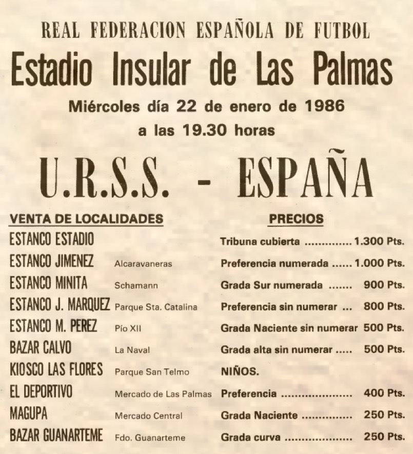 Ya rodados y después deleitar un enero soleado en la isla, los soviéticos afrontaron el encuentro amistoso en el Estadio Insular frente a una España que también forjaba a su equipo con Miguel Muñoz, de cara a la cita mundialista de aquel año. Hubo llegó absoluto en el Estadio Insular, con una expectación extraordinaria. Era el segundo encuentro internacional absoluto en el recinto, casi 22 años después del España-Yugoslavia (2-2) del 19 de octubre de 1972.