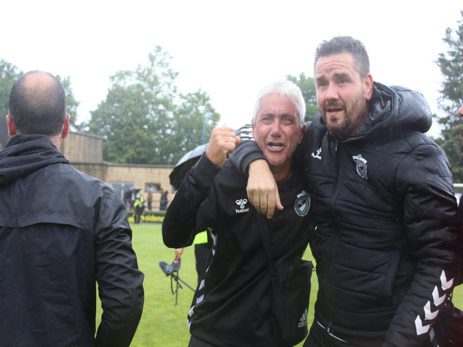 Publica en su cuenta el presidente de la FIFLP, Juanjo Arencibia, una emotiva imagen de dos grancanarios que se abrazan. Sucedió este domingo, en Portugalete. A la derecha, Maxi Barrera, el técnico que ha llevado al Unión Sur Yaiza a la Segunda RFEF. A la derecha, Javier Melián, el ex jugador de la UD Las Palmas, Javi El Abuelo. Sus lágrimas de felicidad tienen una doble razón, porque su hijo Javi fue también autor del gol del empate lanzaroteño que llevó a su equipo a la prórroga ante el conjunto vasco. Si era un día para emoicones no eligió otro mejor.