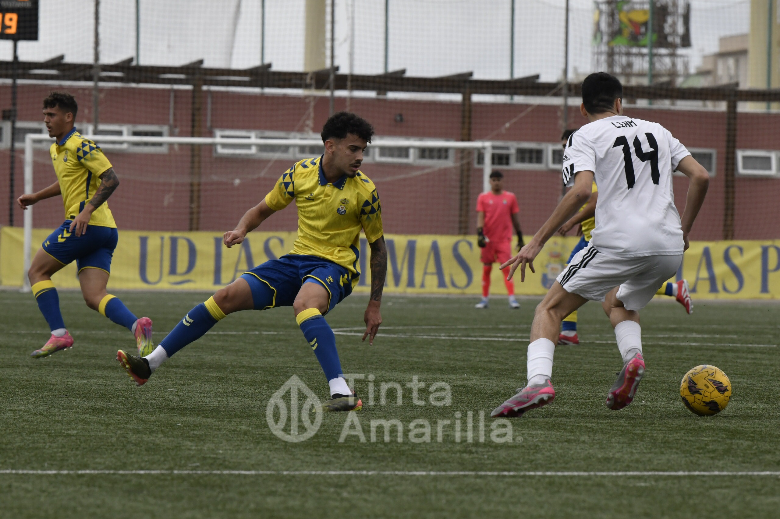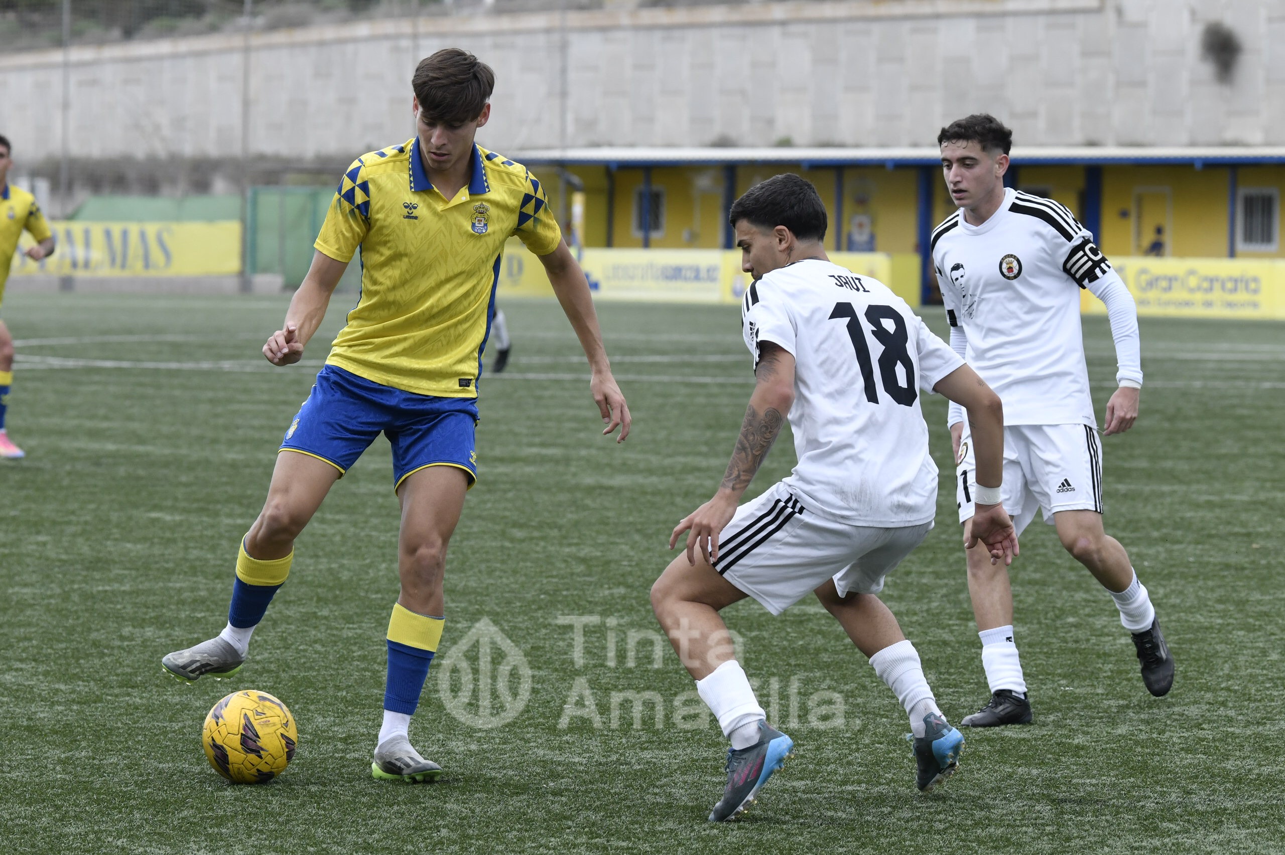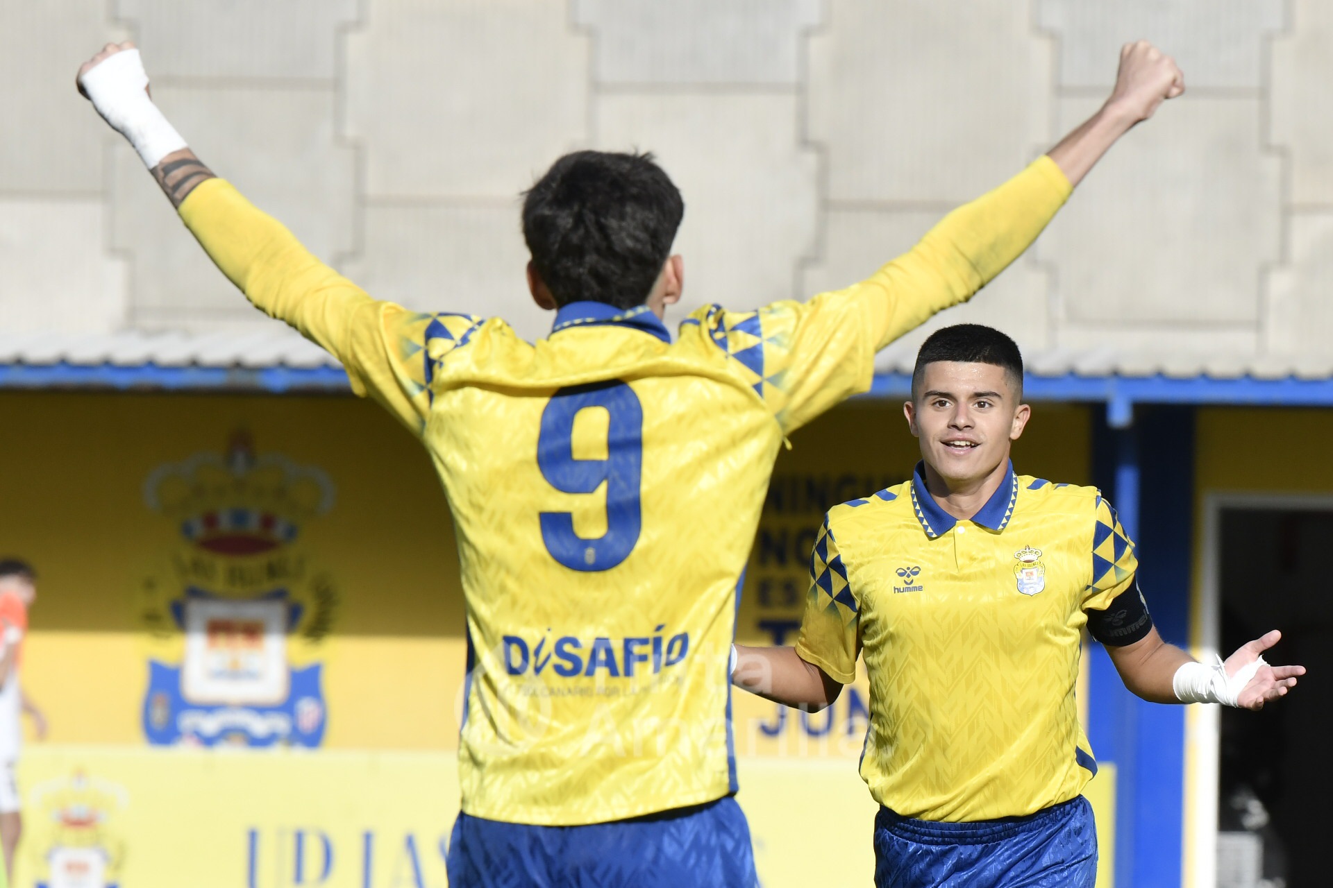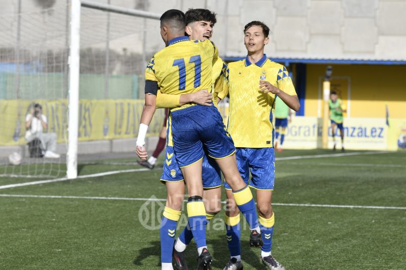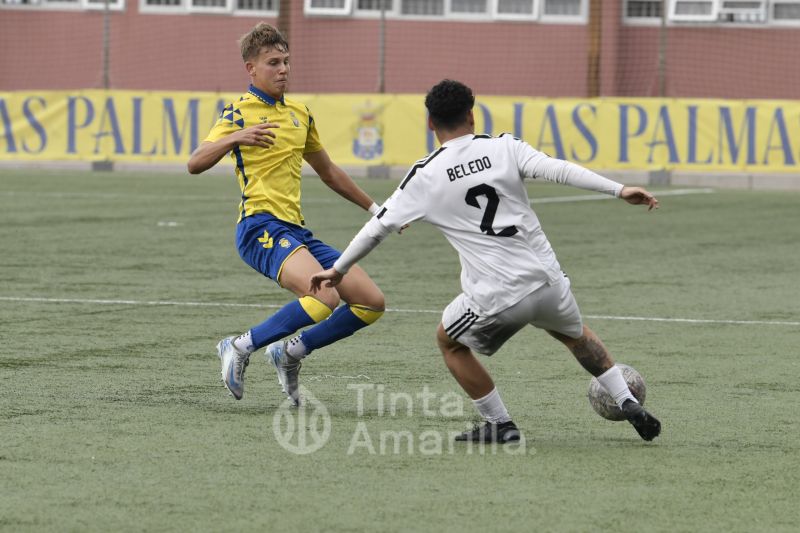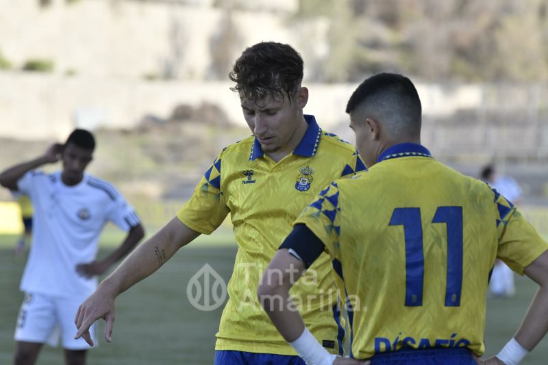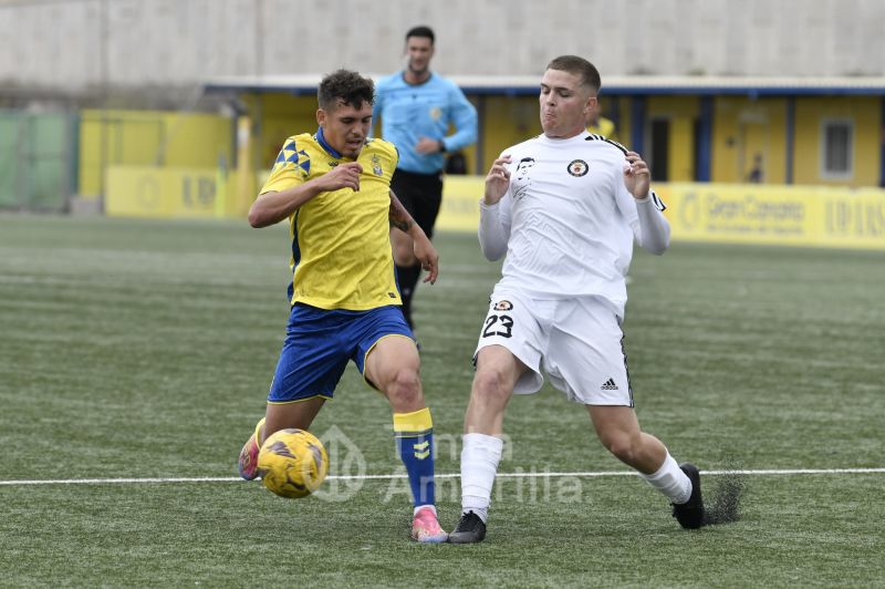 El Arucas no le puso fácil la tarde a los jugadores canteranos locales. Además de su buena salida al partido, los visitantes se pusieron por delante en el tanteador con un gol extraordinario de su ariete Bamba. El chut ganador golpeó el larguero y picó dentro de la portería amarilla.