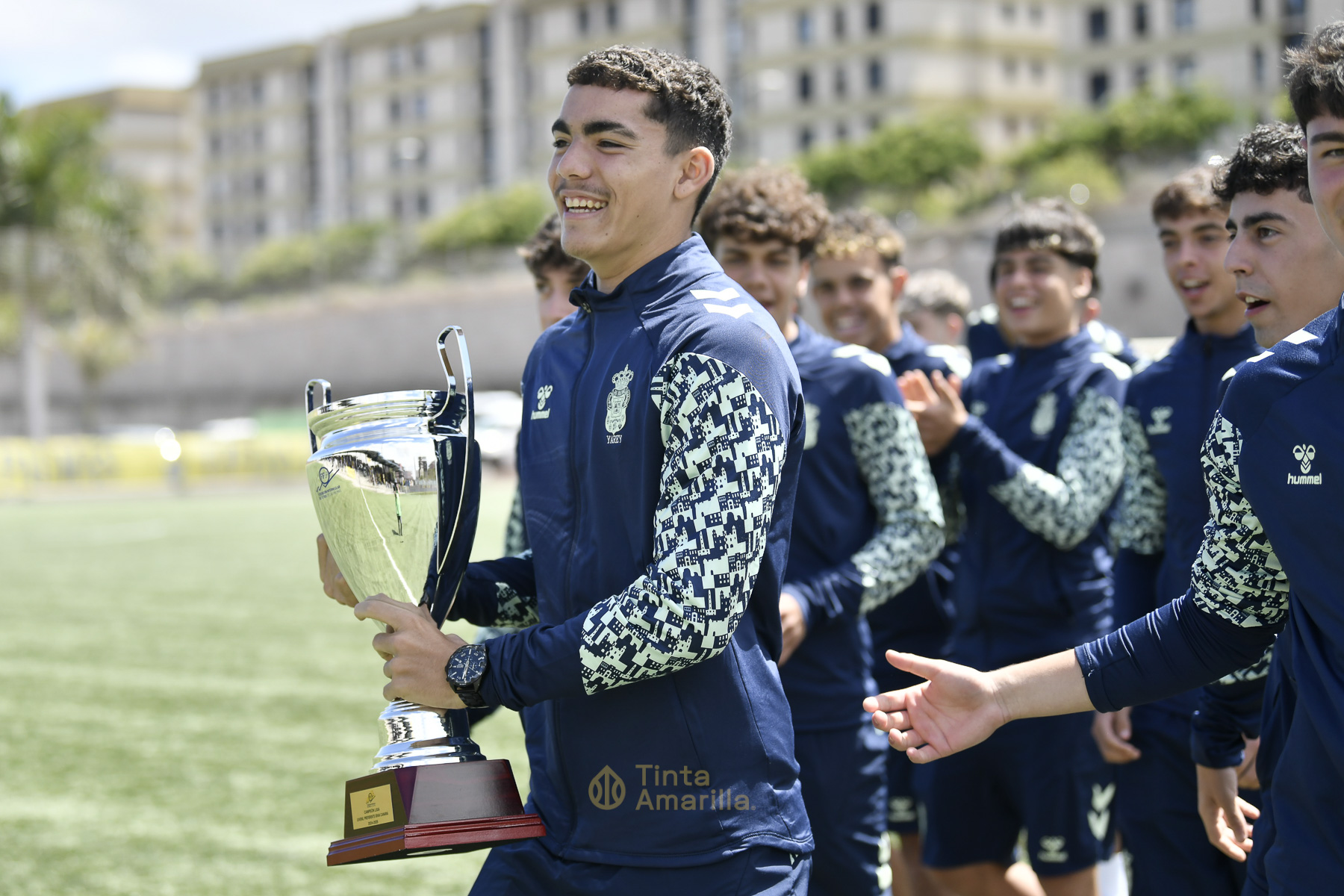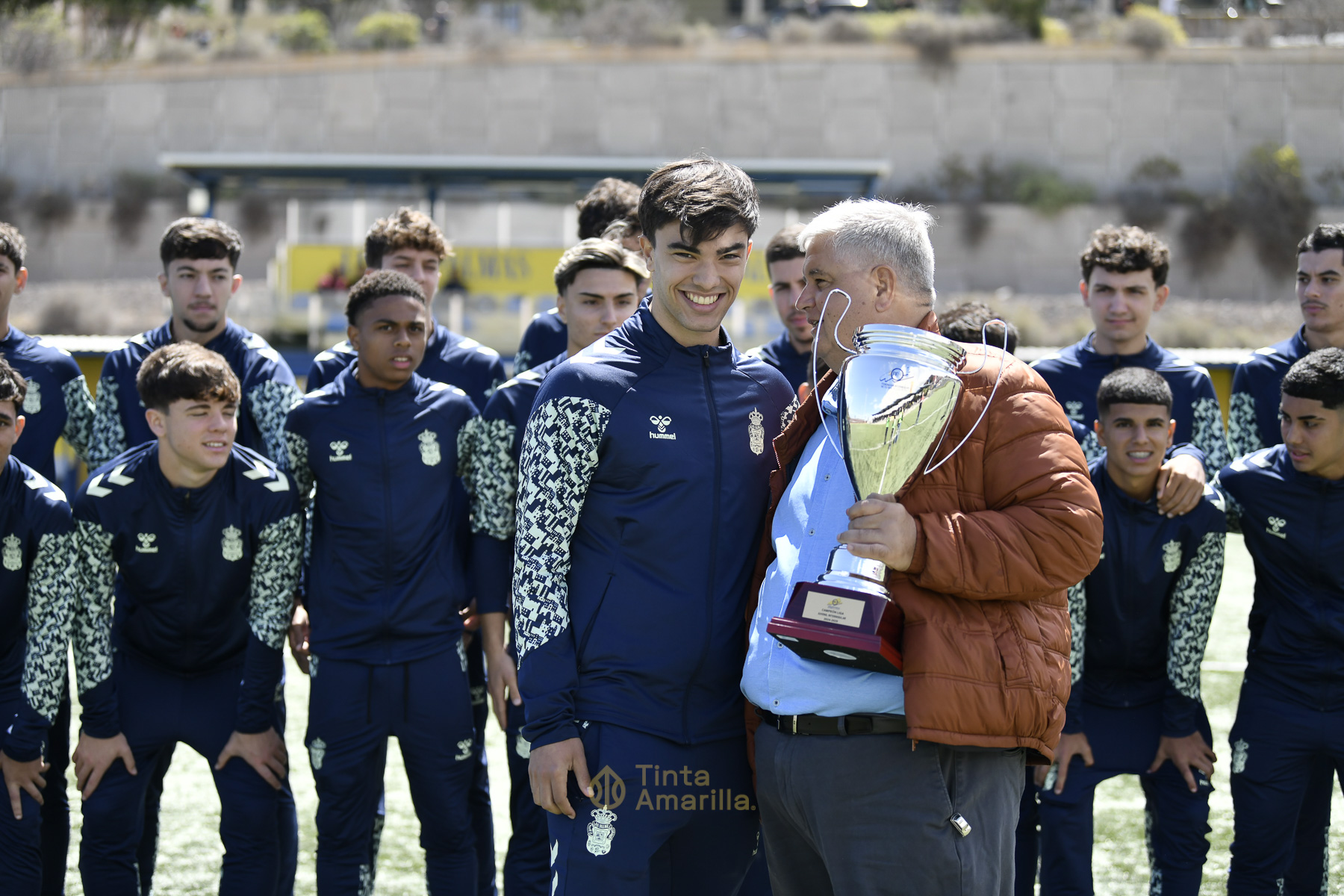 Los juveniles B y C de la UD Las Palmas recibieron este domingo sus respectivos trofeos de campeones. La entrega federativa, con el presidente Juanjo Arencibia al frente, se realizó en el estadio Anexo al Gran Canaria en el intermedio del encuentro entre Las Palmas Atlético y la UD Ibarra, de Tercera RFEF.