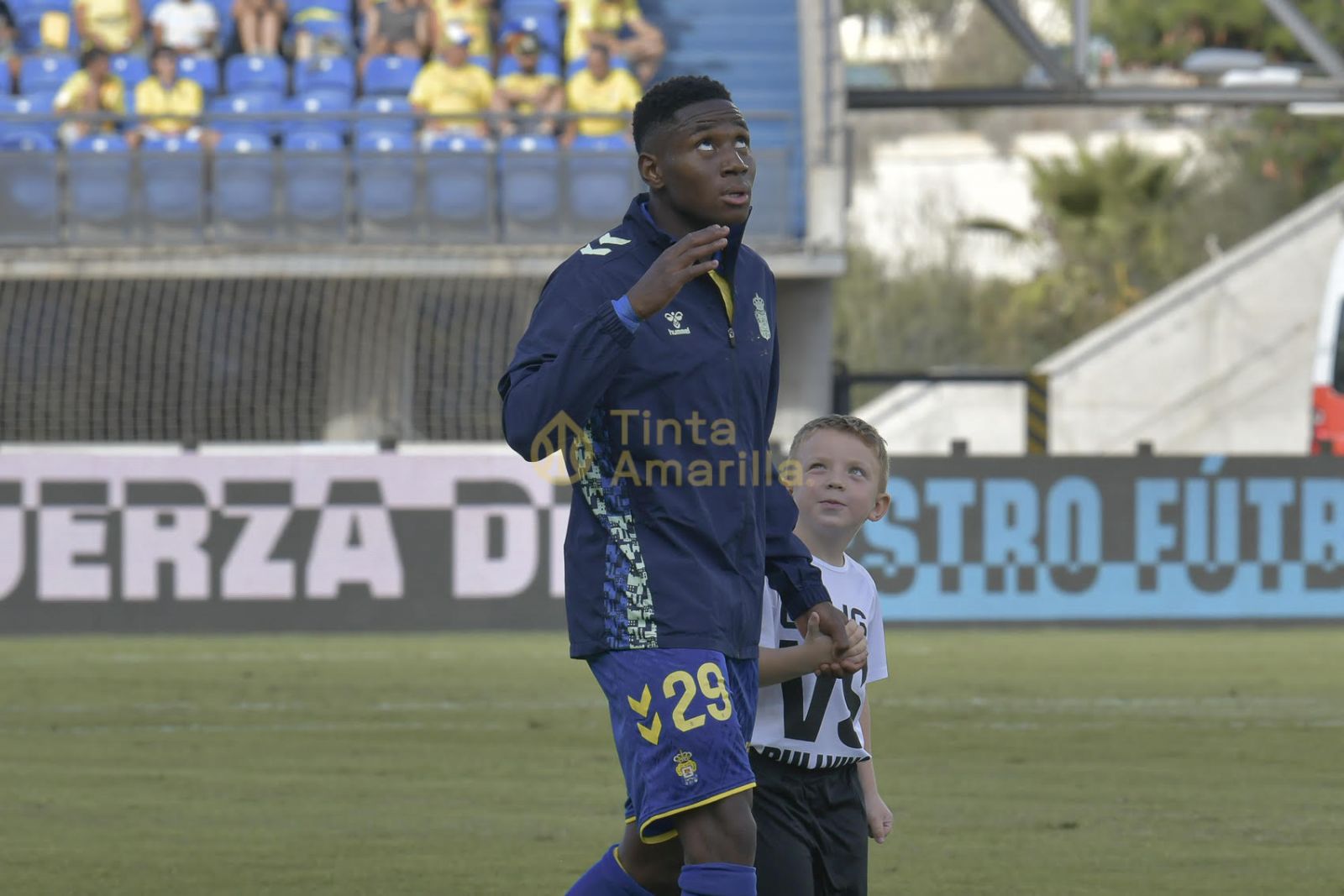 Preciosa imagen antes de la batalla. Es Dário Essugo, caminando con un joven aficionado de la mano. El niño lo mira con admiración mientras el portugués lanza al cielo su objetivo buscando un aliado. Los ojos son espejo del alma, sin duda.