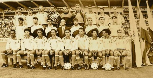La foto oficial de la temporada 95-96. En ella no aparece Valerón. "Duró siete partidos en el filial", recuerda Juan Manuel Rodríguez.