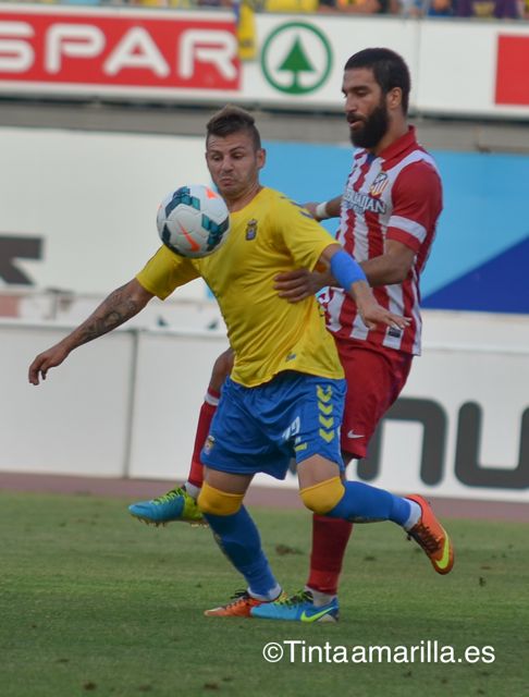 Los primeros minutos del Atlético en el Estadio de Gran Canaria este sábado fueron contundentes. Sin duda, no querían sorpresas con el juego del equipo amarillo. Valerón recibió dos entradas hasta su relevo. La primera de Mario Suárez, con un golpe al tobillo; la segunda fue casi involuntaria de su ex compañero en el Deportivo, Filipe Luis, que impactó con su rodilla en el muslo. La consecuencia fue su prematura salida al banquillo para recibir las atenciones de los doctores. El siguiente fue el búlgaro Delev. La imagen superior es ilustrativa: un balón suelto, de espaldas a la defensa y en el centro del campo, merece este zapatazo del turco Turan, que golpea en el rostro del búlgaro, al que no le dieron respiro... Por momentos se convirtió en un amistoso con factura para los amarillos. Este lunes se conocerán las consecuencias.