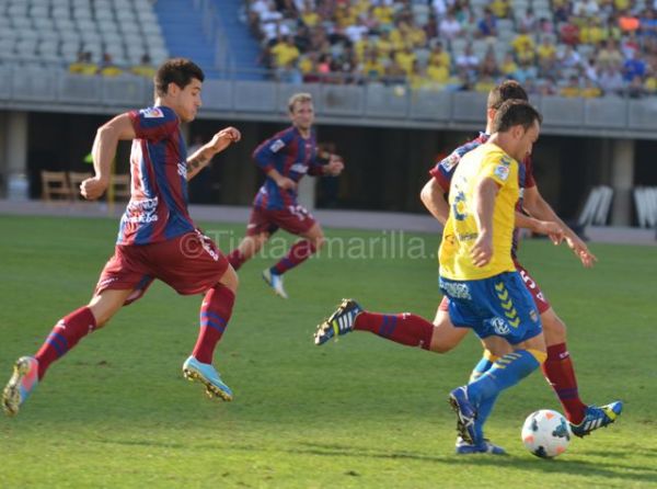 Comprobado está que la velocidad que ofrecía el ataque de la UD Las Palmas la pasada temporada no está presente en la actual. Con ella se convirtió en uno de los conjuntos diferentes del campeonato, porque utilizaba un arma que está al alcance de pocos. Este sábado Lobera optó por situar a Spas Delev en la banda izquierda, donde el búlgaro apenas logró lanzar una galopada que, de inmediato, dirigía hacia el centro. El ariete internacional, sin embargo, ofreció la jugada sorpresa de la tarde cuando se incrustó entre los defensas esperando un pase largo de Momo. Mereció el penalti que el colegiado no señalaría. Por la derecha, Momo, o más tarde Tato. Las perspectivas de progresar por esta vía no se atisban puesto que logra coordinarse para presionar y capturar balones para sus lanzadores.