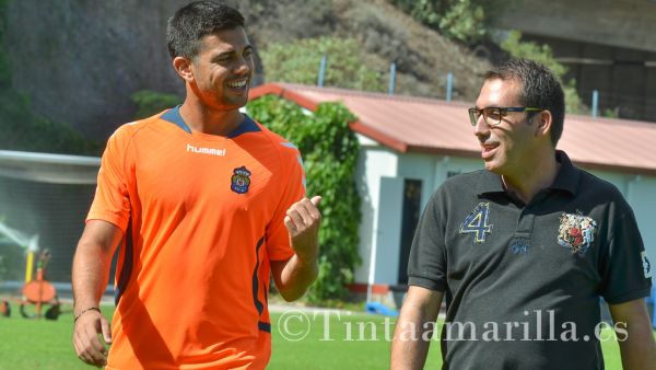 Aythami camina junto al jefe de prensa de UD Las Palmas, Pedro García (C. Torres)